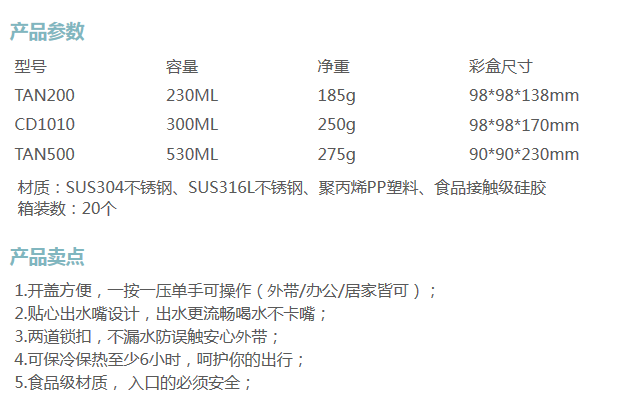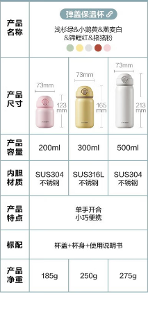 北鼎弹盖保温杯 230ML/300ML/530ML