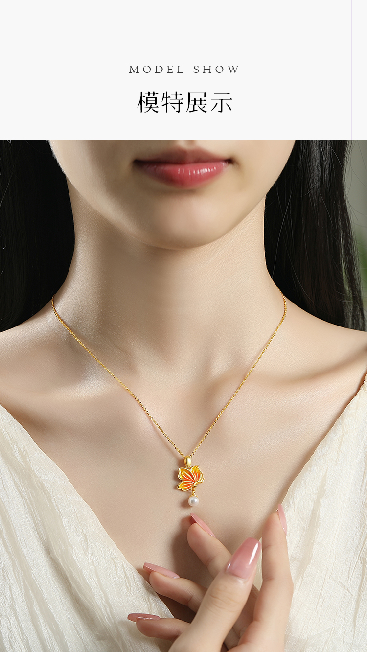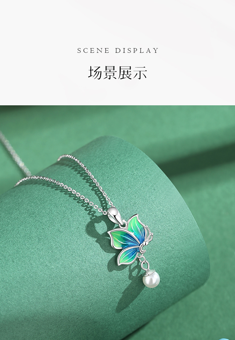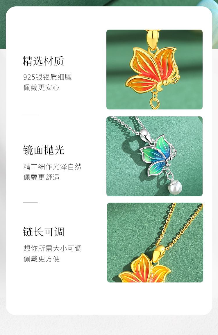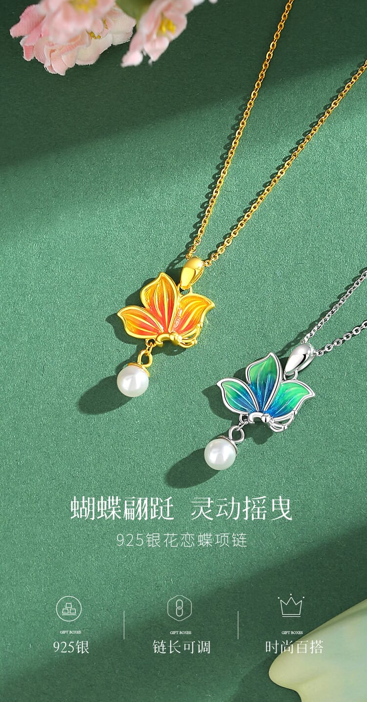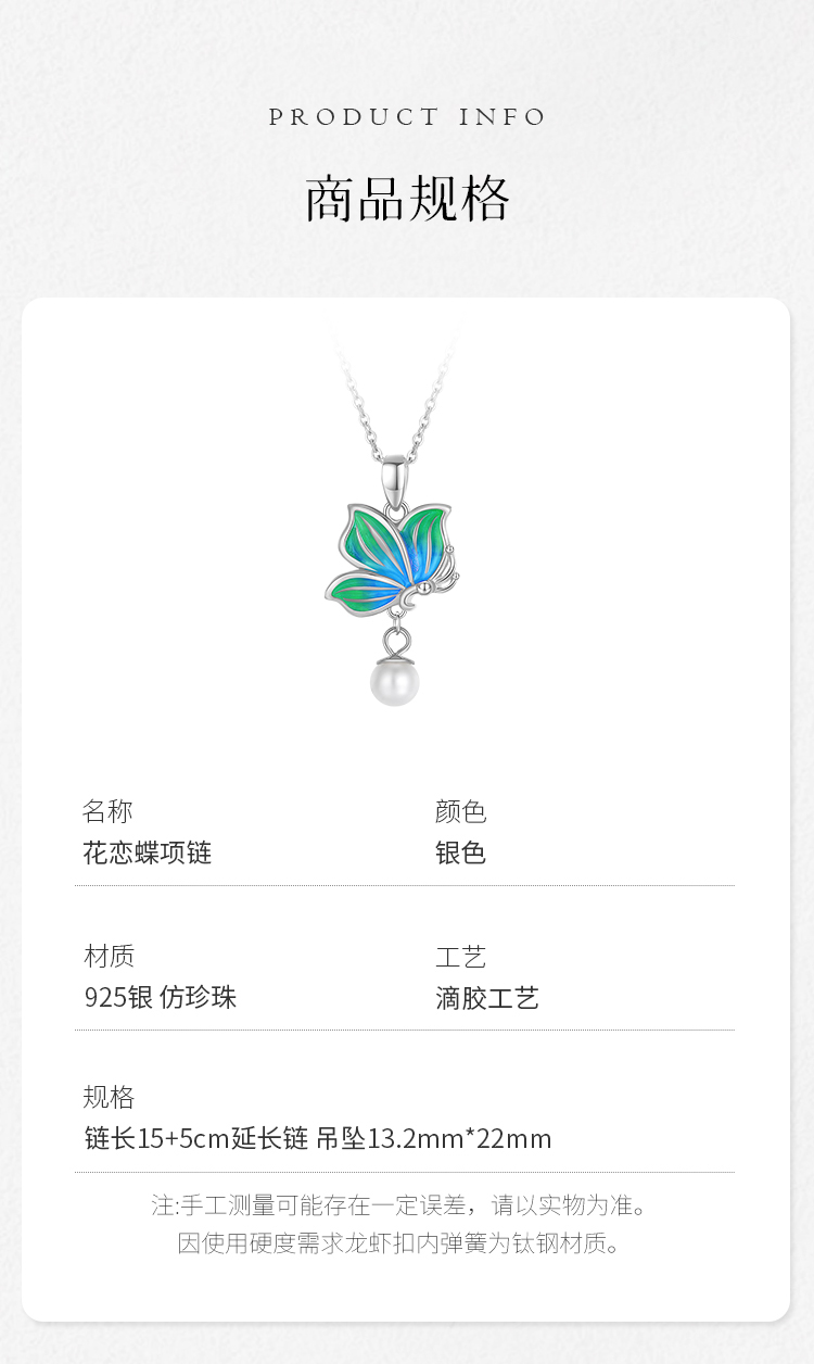 Winy925纯银花恋蝶项链送女友闺蜜节日生日礼物
