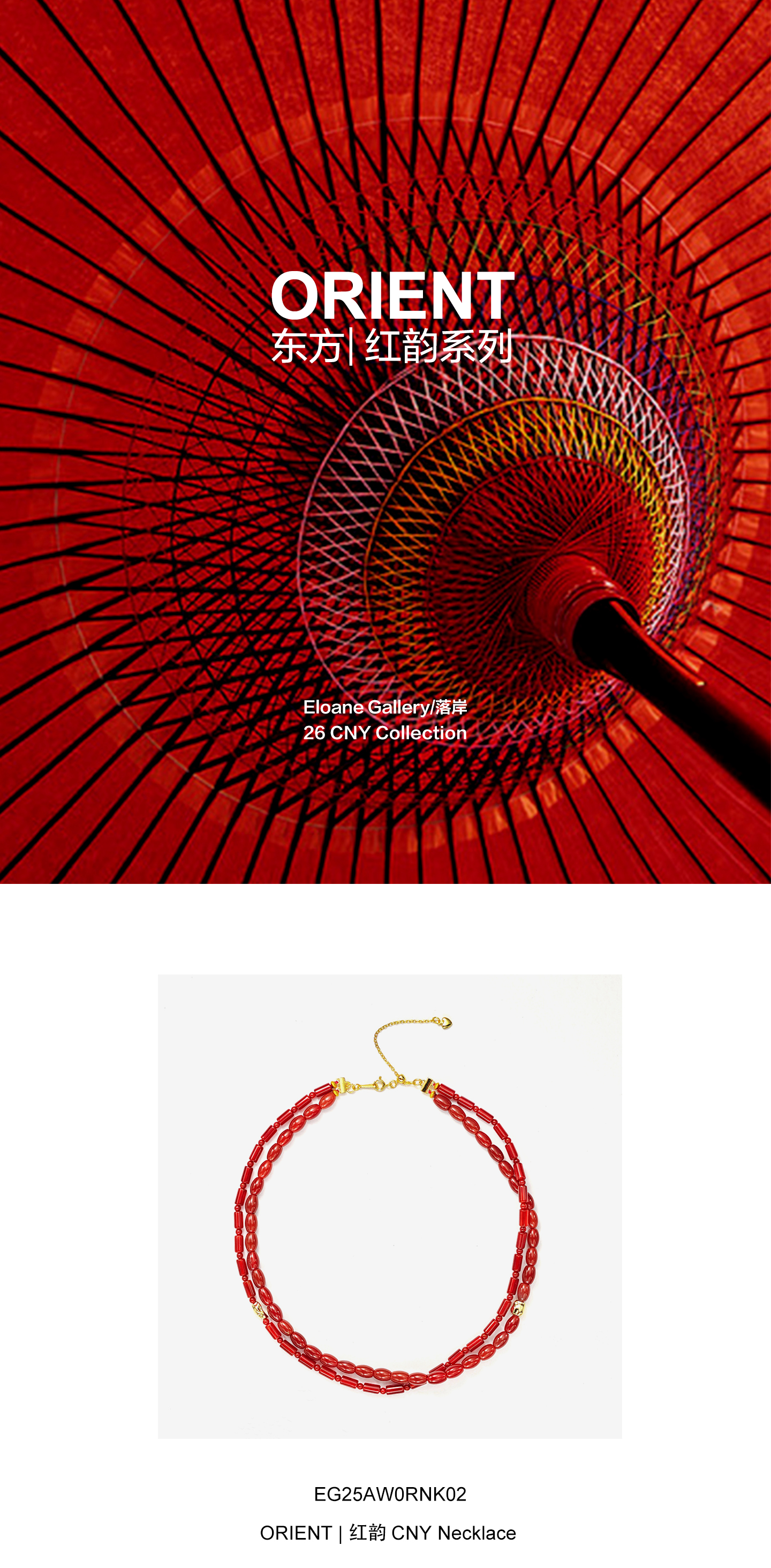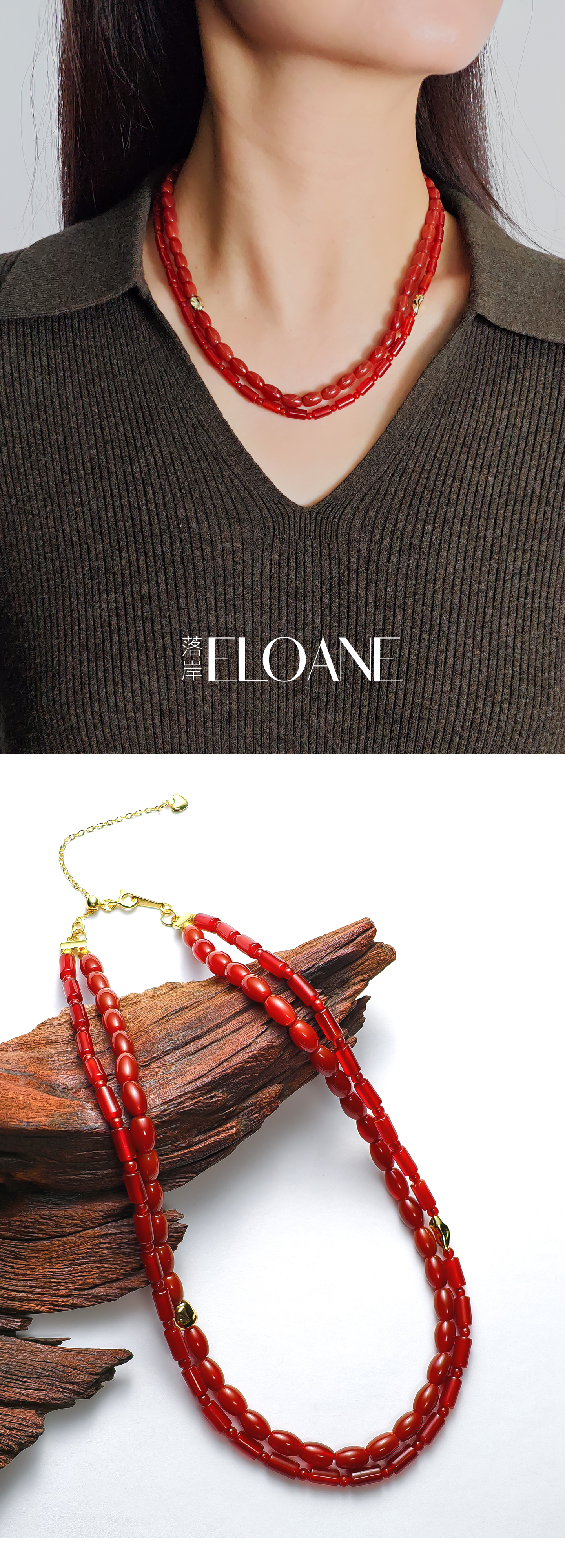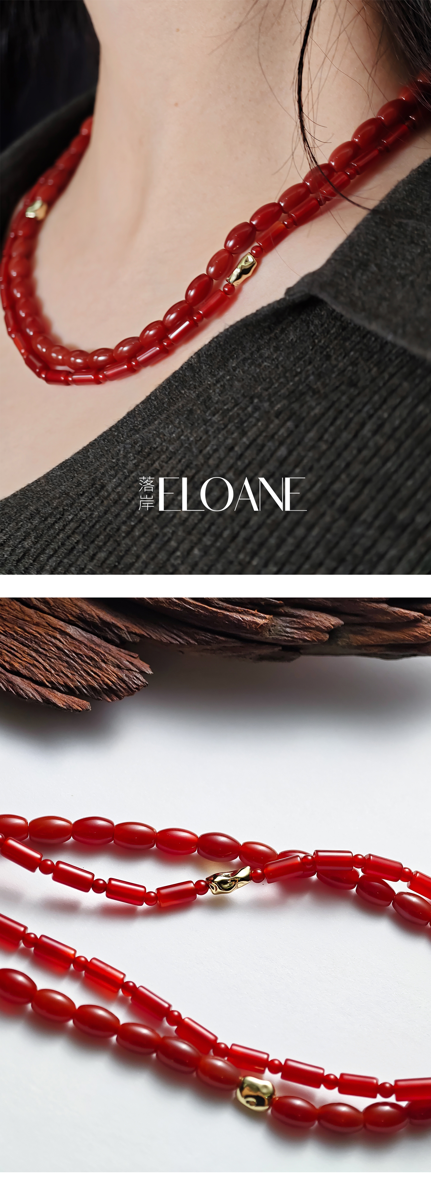 ELOANE GALLERY落岸 双层红玛瑙点缀不规则金属串珠项链ORIENT红韵系列