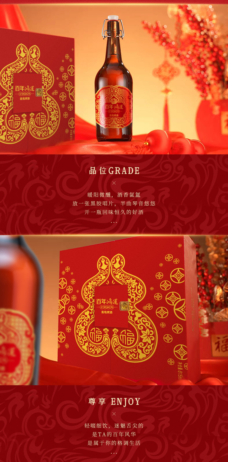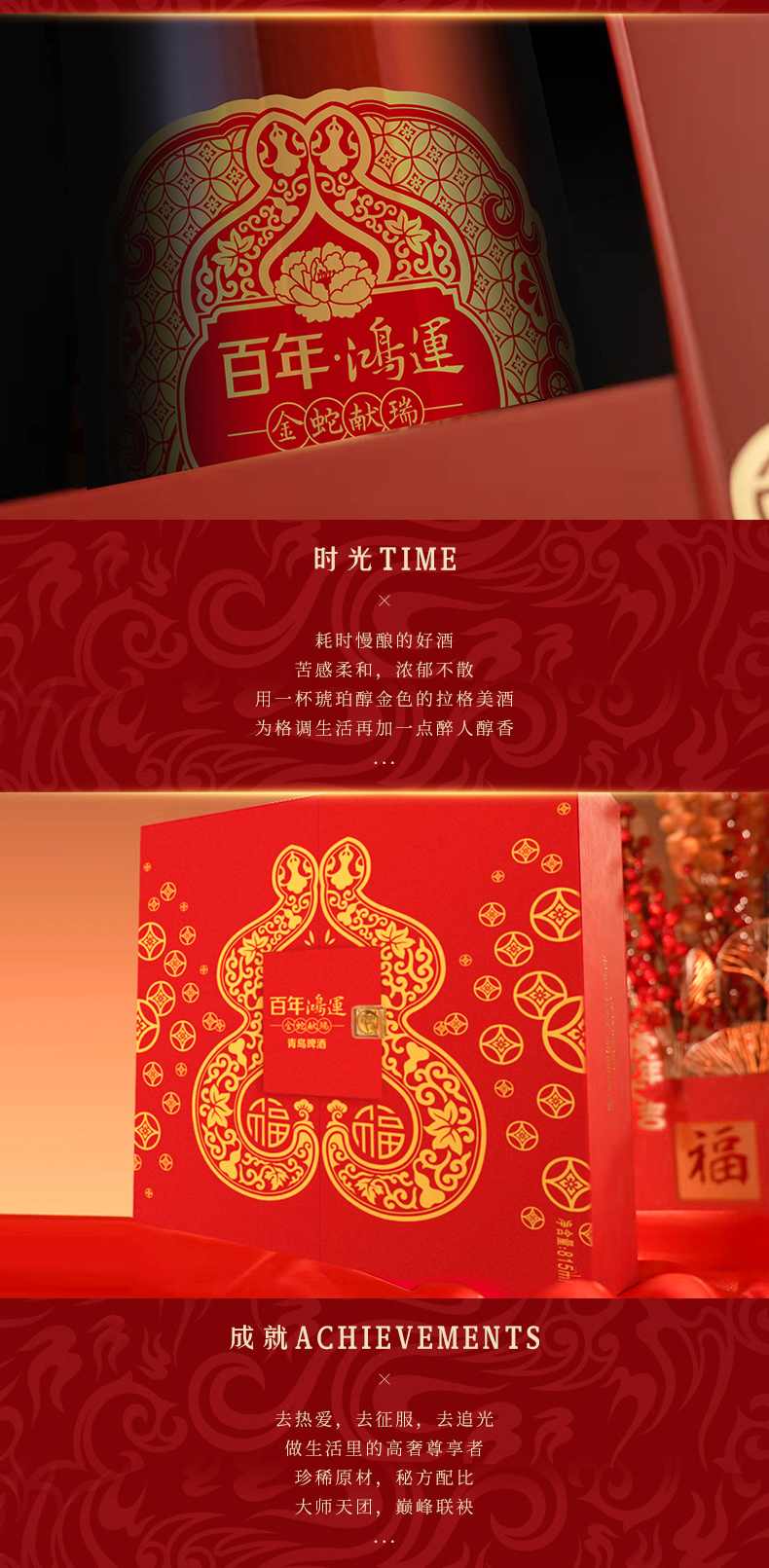 青岛啤酒百年鸿运(金蛇献瑞)19.8度815ml*1瓶礼盒装 商品图2