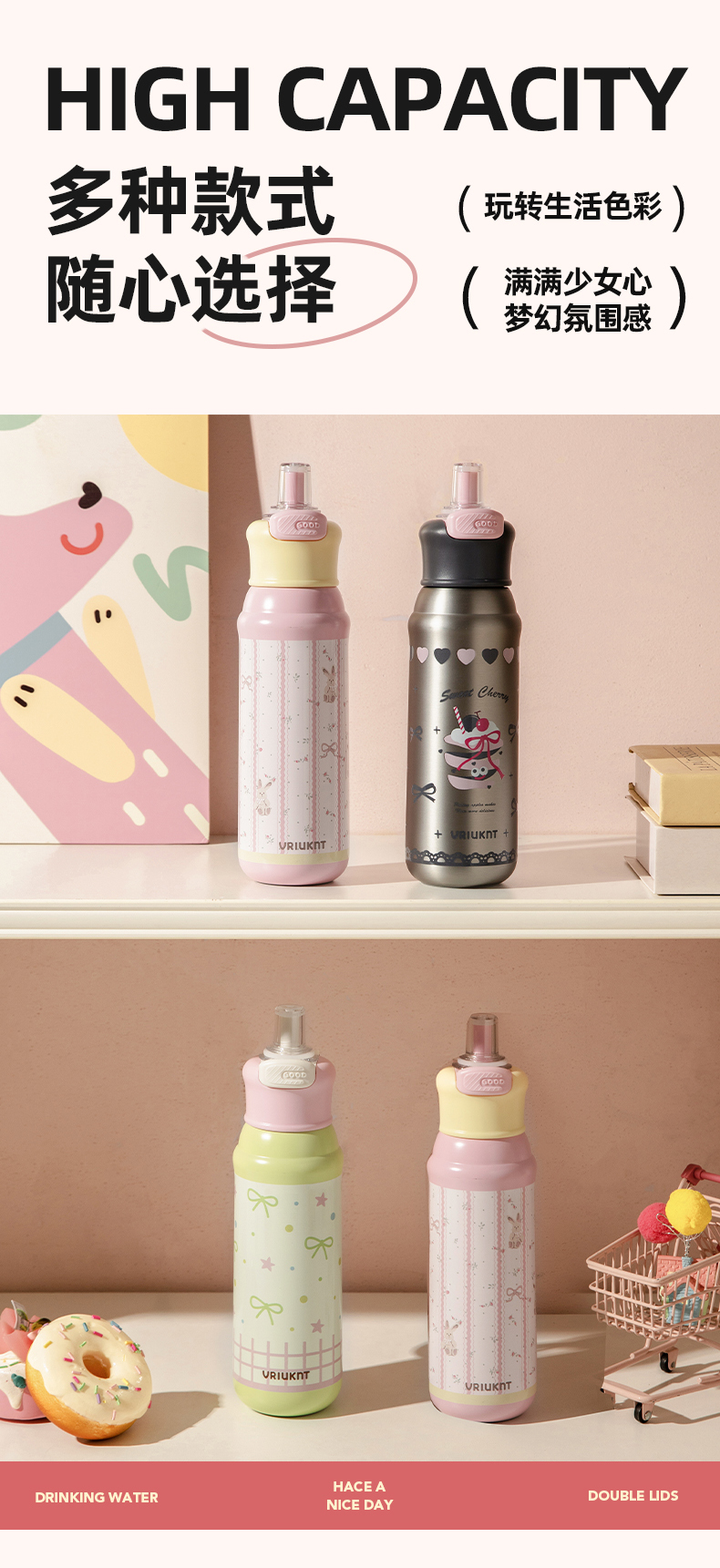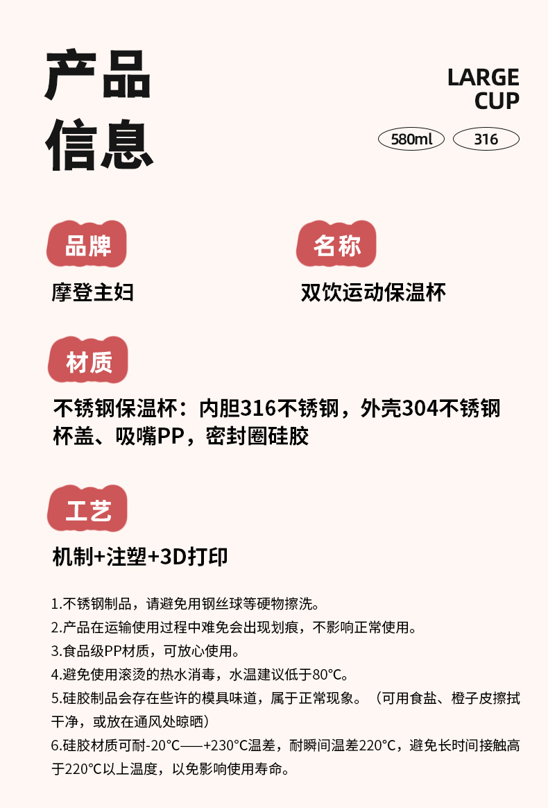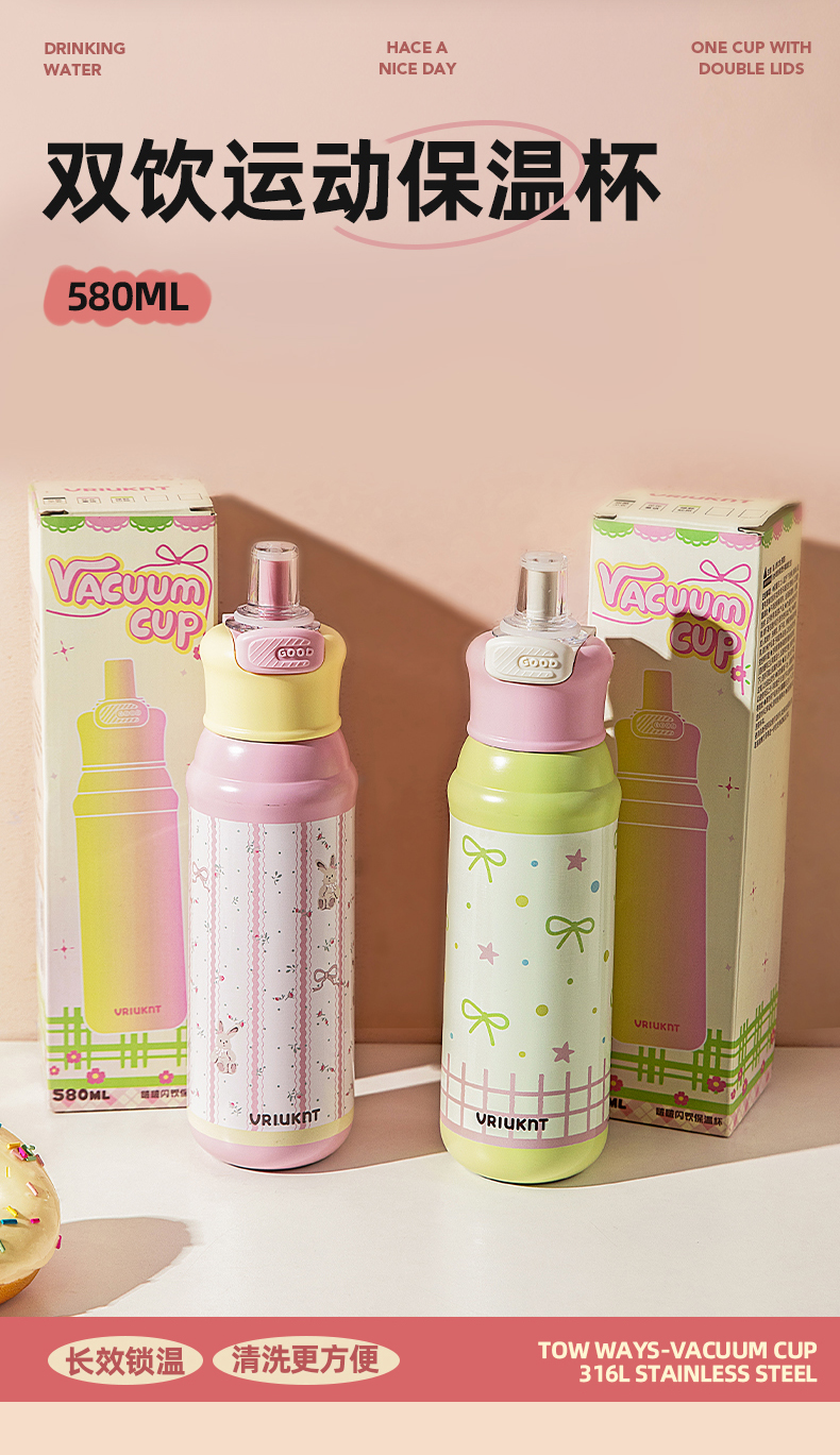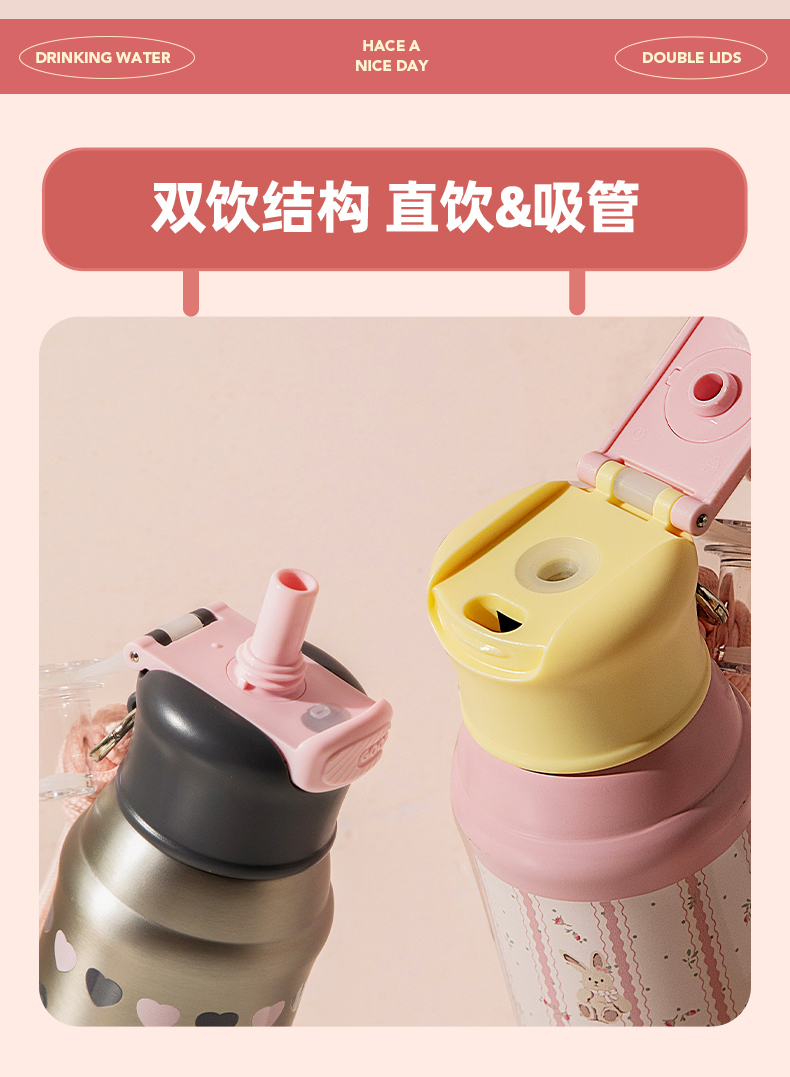摩登主妇保冷保温杯高颜值大容量双饮水杯女生2025新款杯子吸管杯