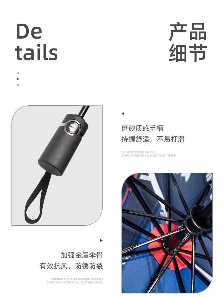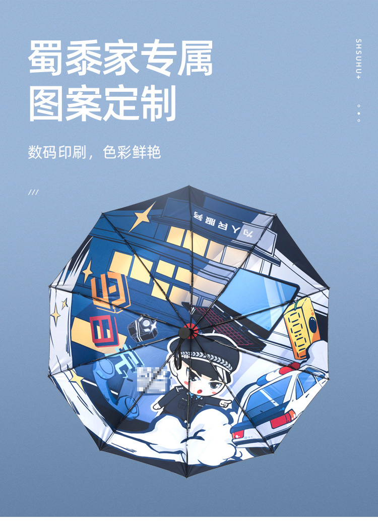 【今日无J自动伞】一键开收伞 不伤手 晴雨两用反向伞 原创今日无J图案 黑胶面料