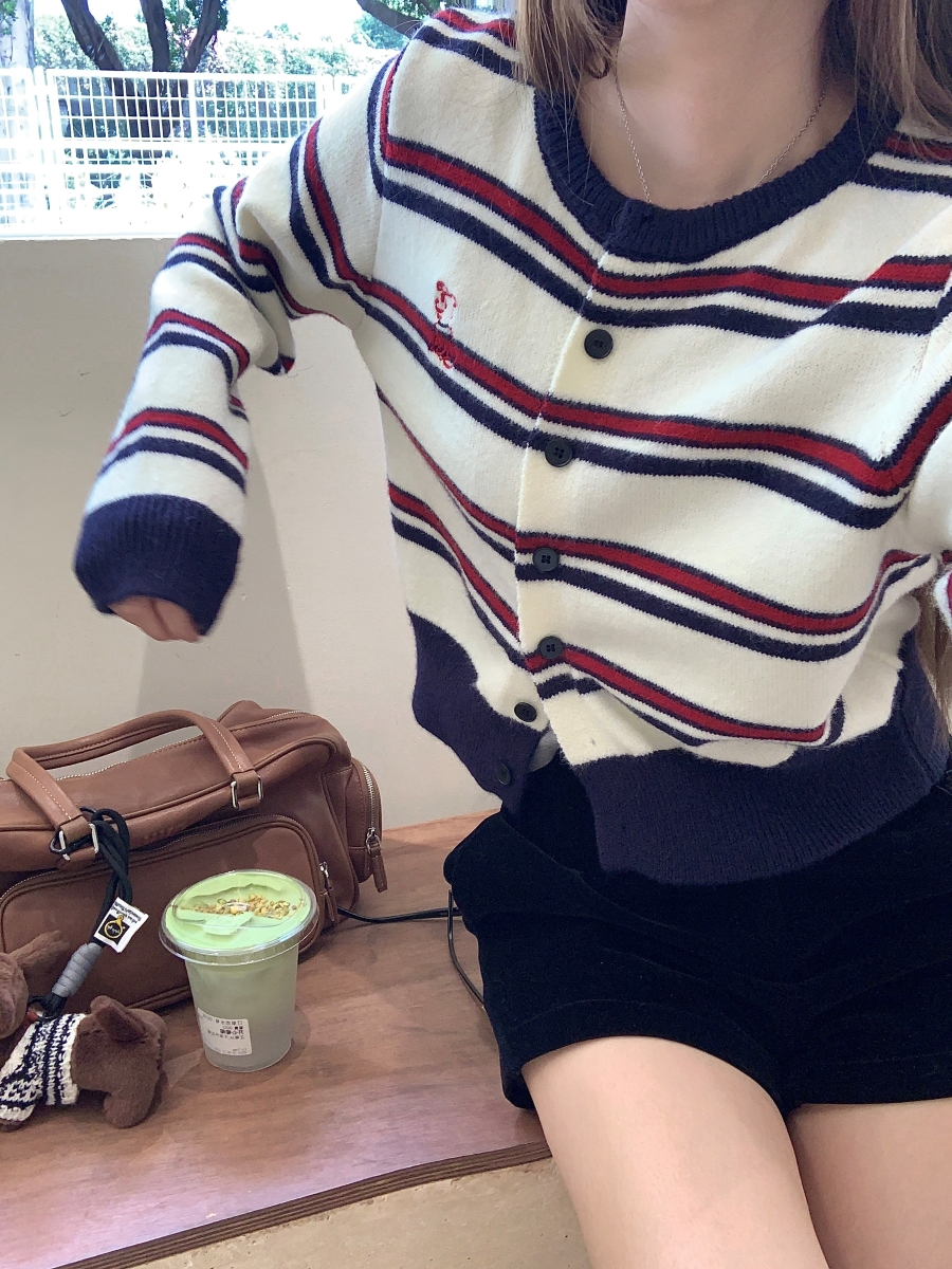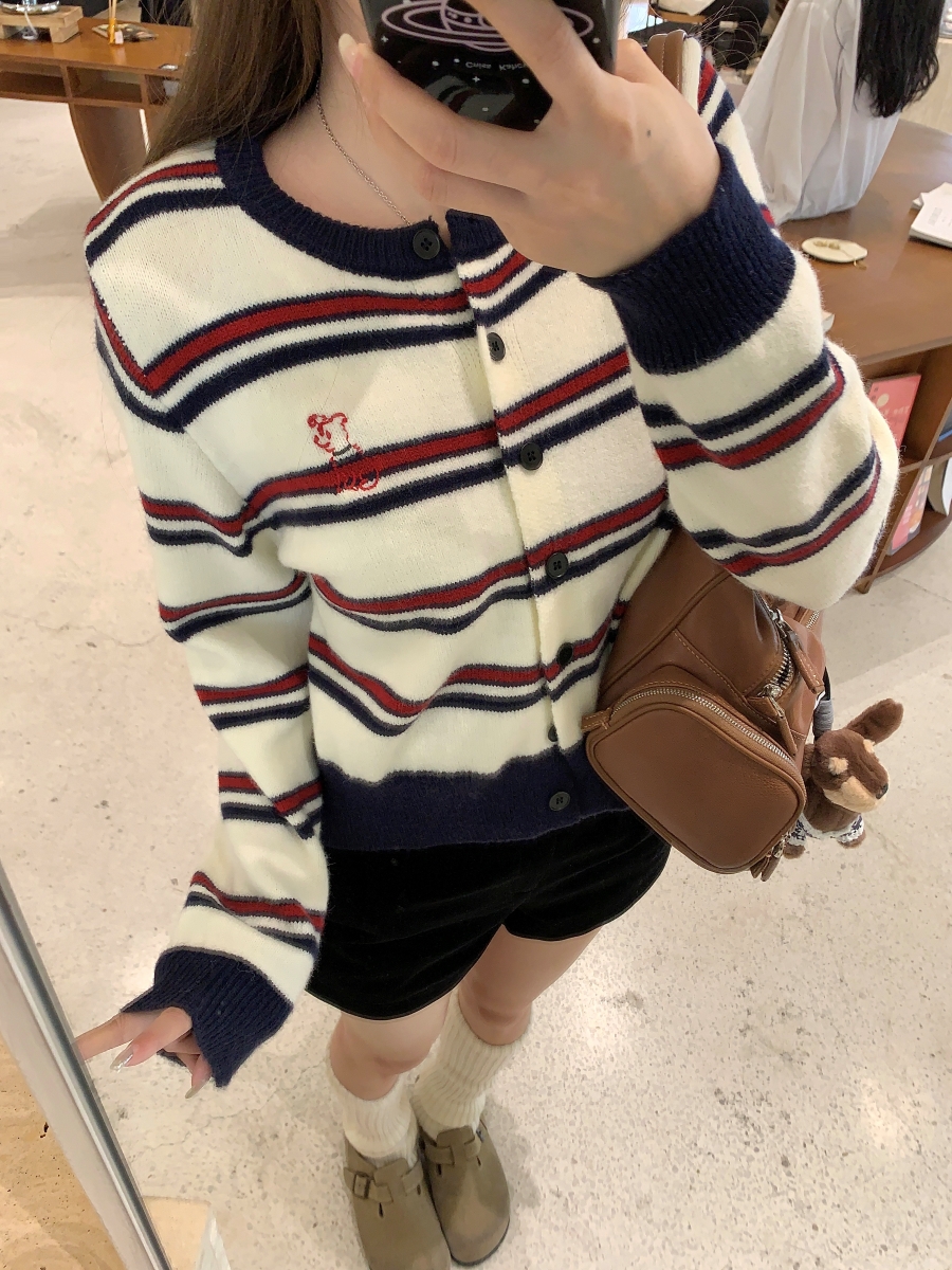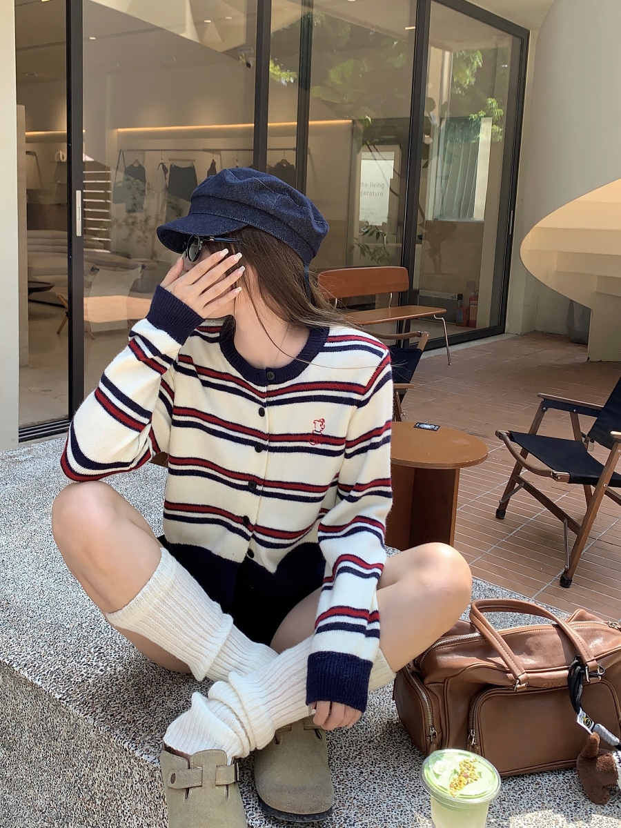 入秋新品【OSMIC ARMIN可爱修狗"条纹开衫】4.2%山羊绒+4.5%超细羊毛黄金配比重工对色对条缝合