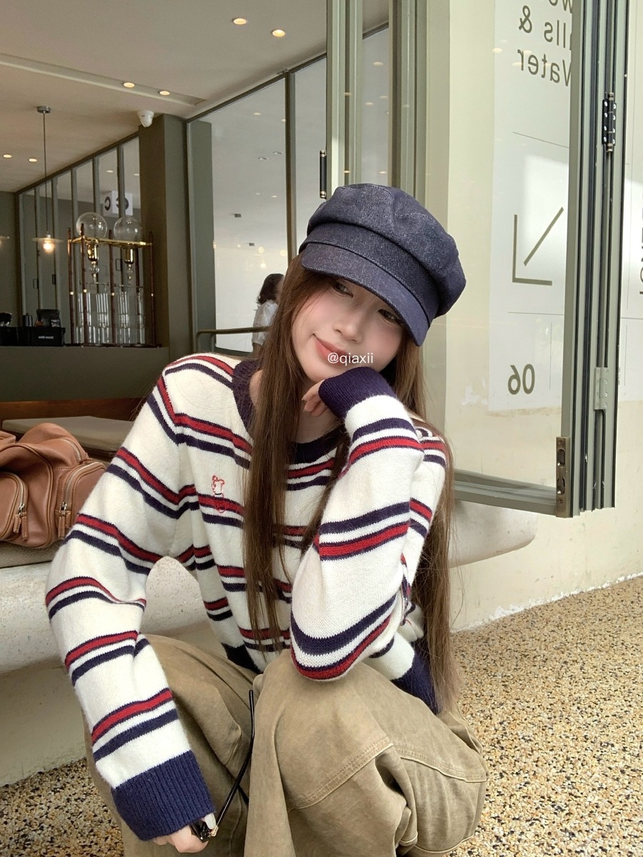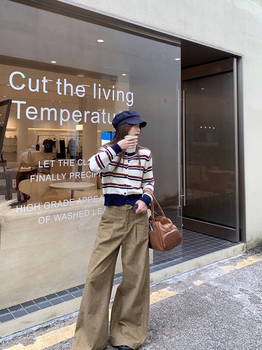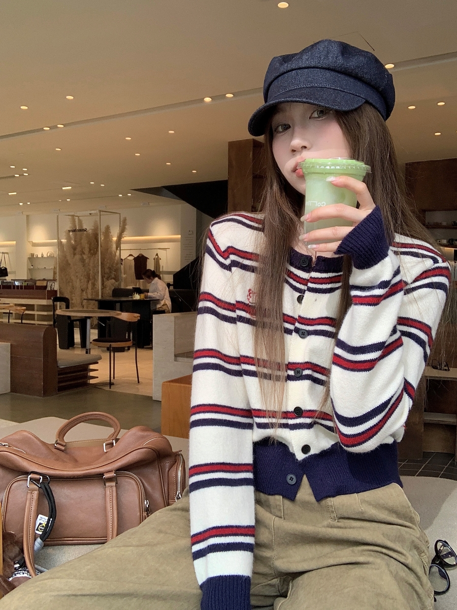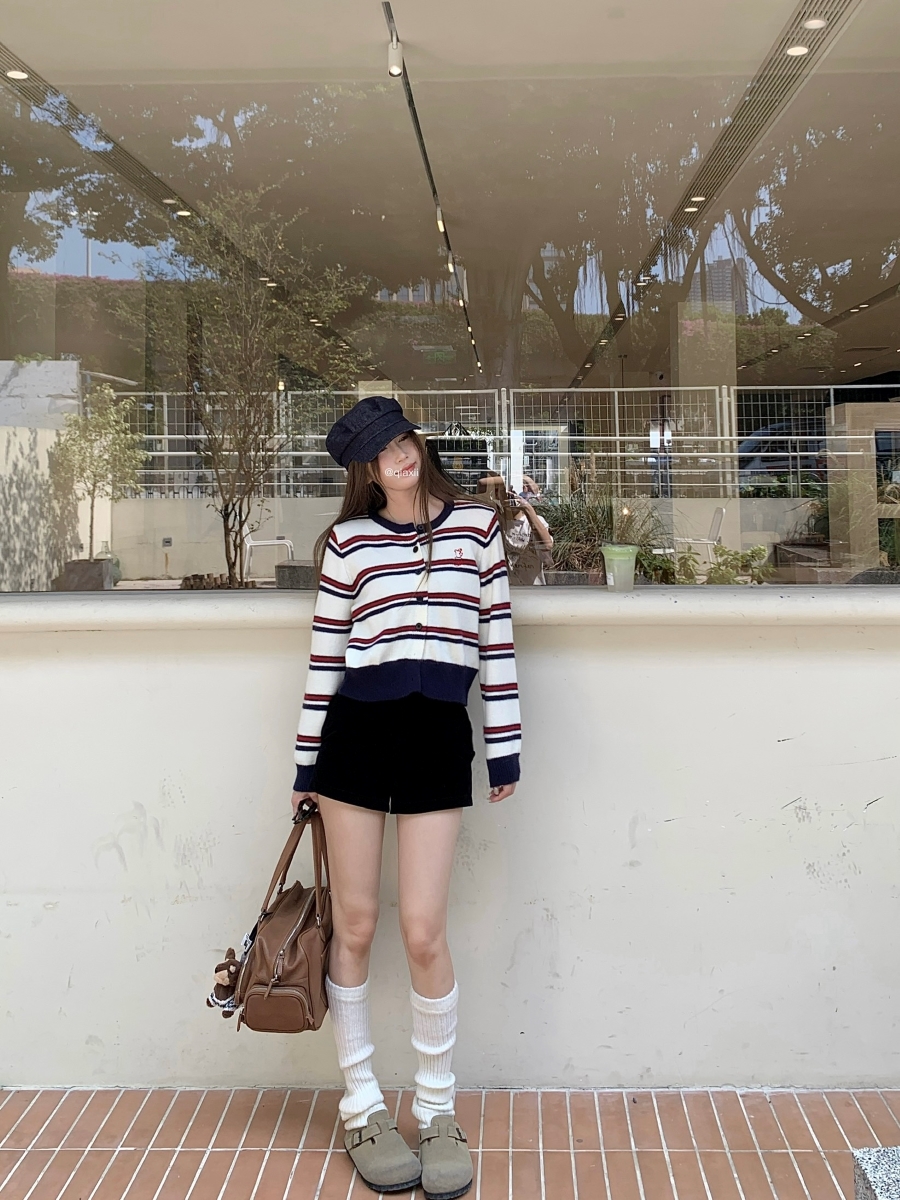 入秋新品【OSMIC ARMIN可爱修狗"条纹开衫】4.2%山羊绒+4.5%超细羊毛黄金配比重工对色对条缝合