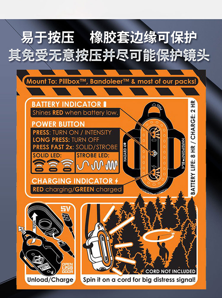 【可充电信标灯 三种闪烁】Hazard4美国危机4 户外多用途爆闪信标灯救援信号灯LED充电闪光灯