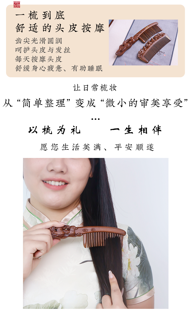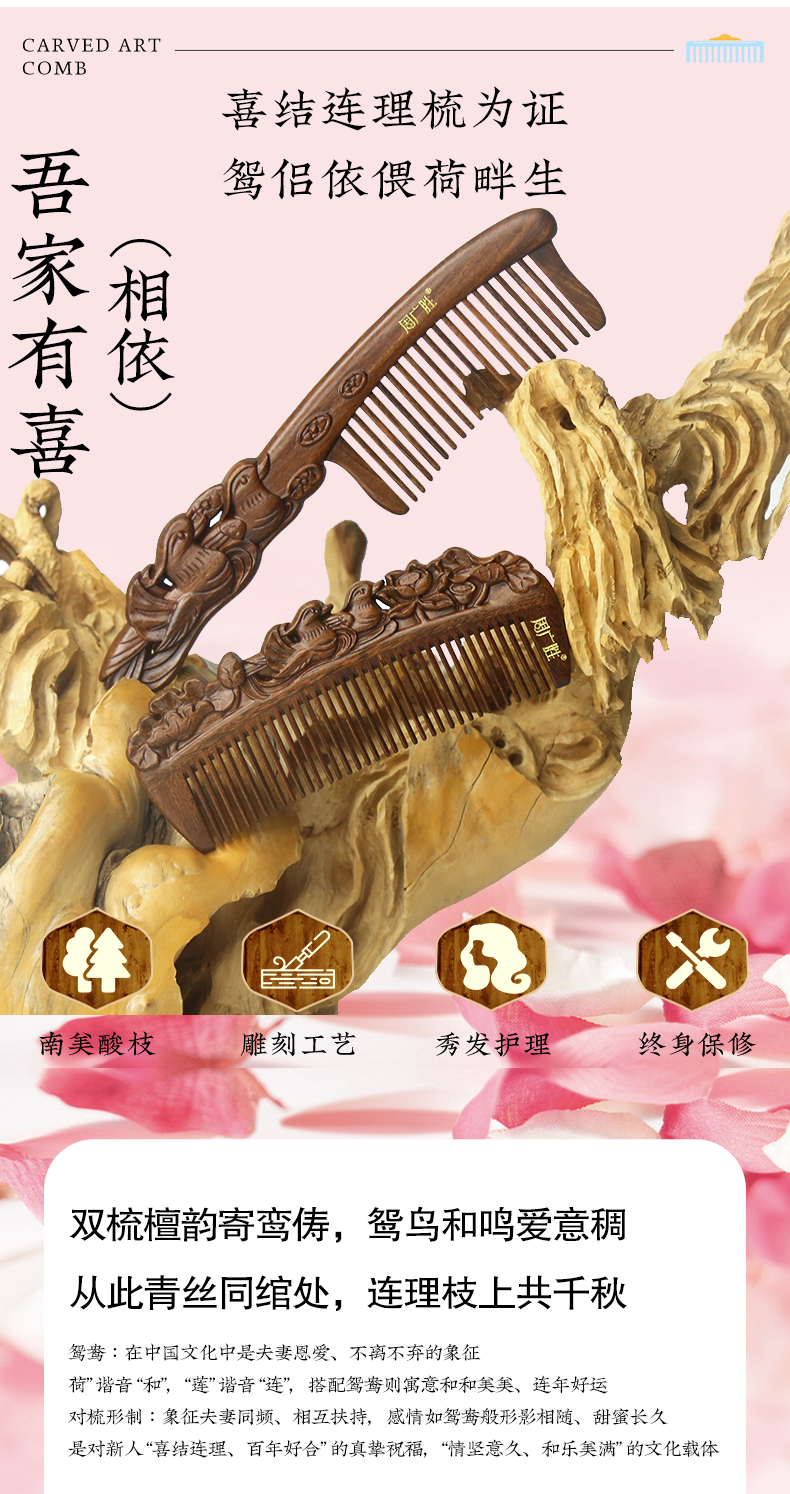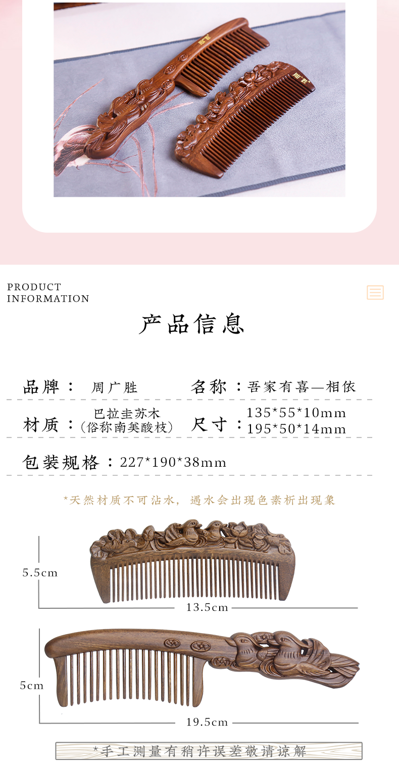 周广胜新品吾家有喜相依婚礼订婚结婚庆梳新婚礼物中式插齿按摩梳