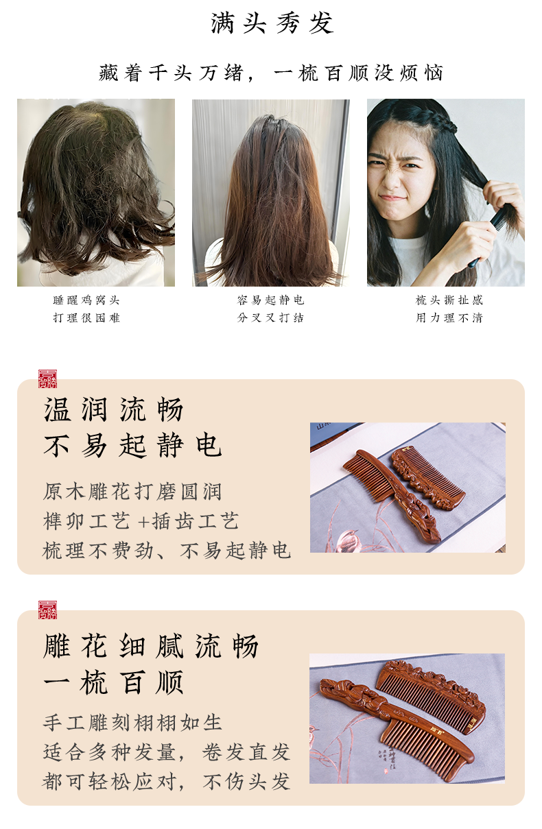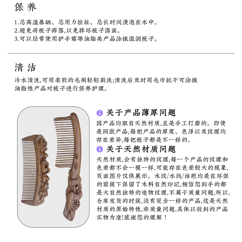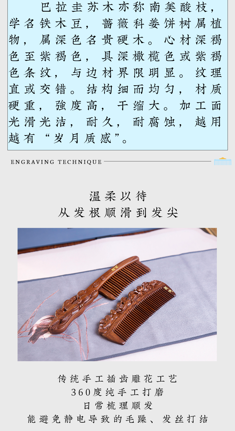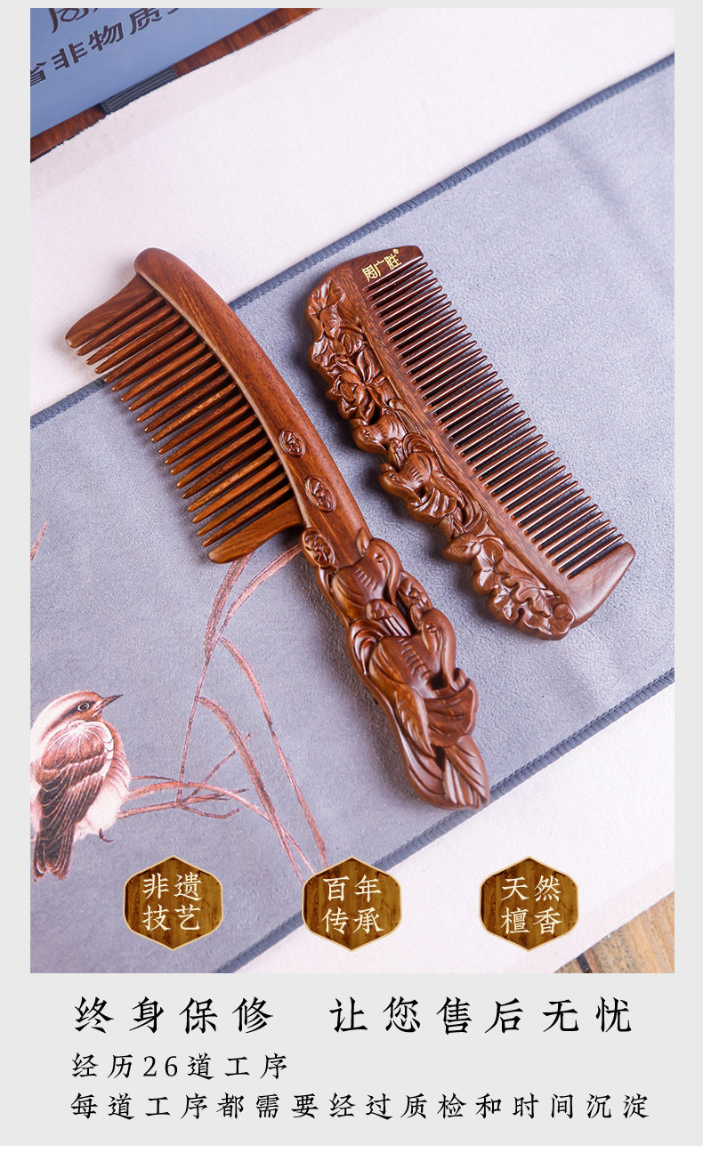 周广胜正品南美酸枝绶带鸟合木梳防静电个人清洁护理送女士长发家用便携
