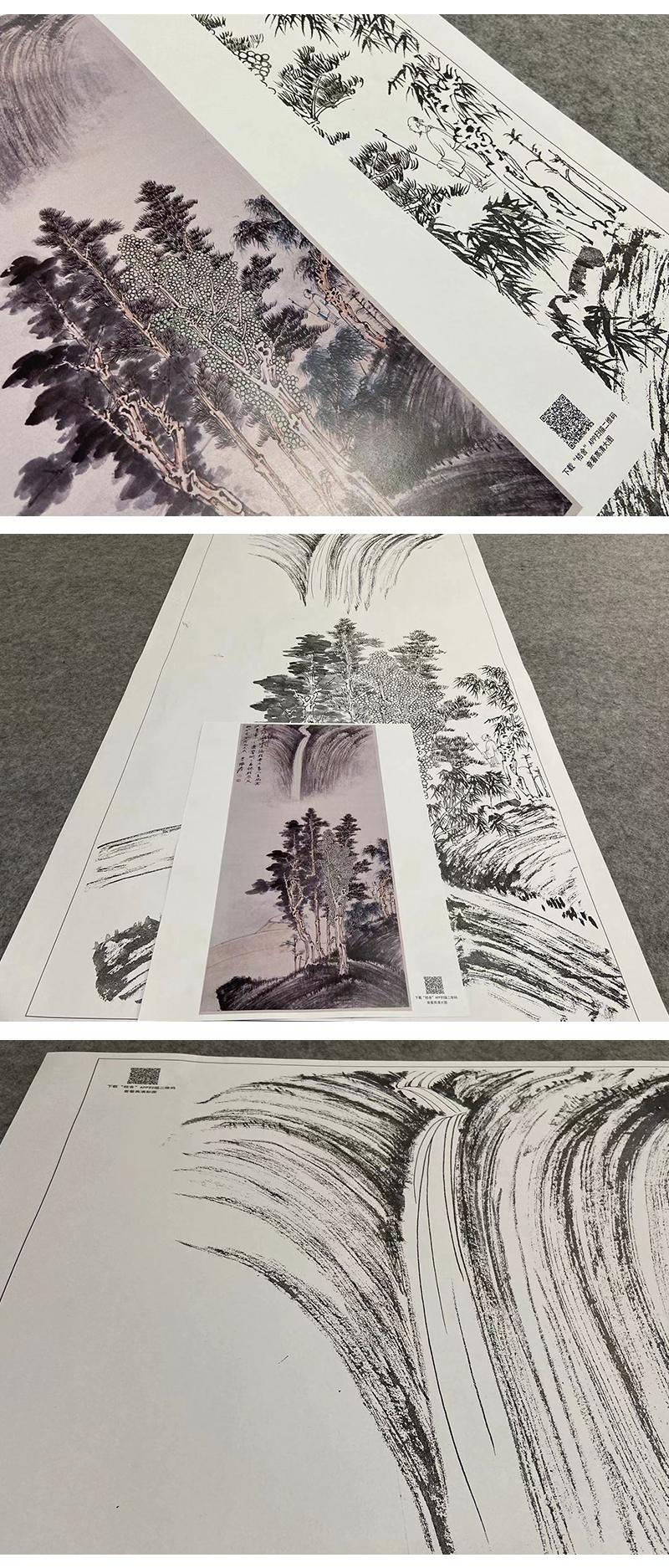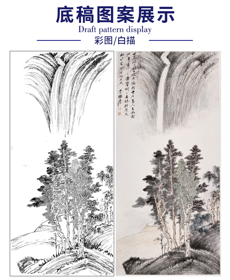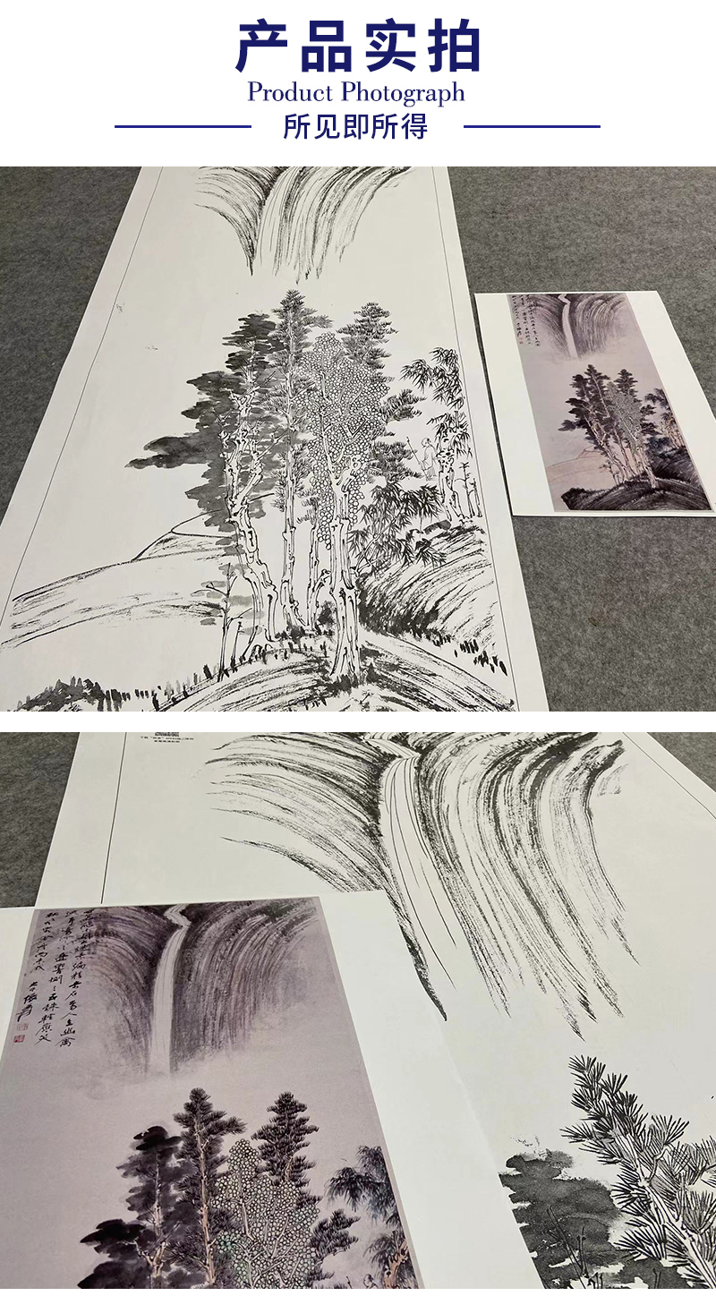 张大千竖幅工笔山水白描底稿-《飞瀑》-多种白描尺寸可选-QD10
