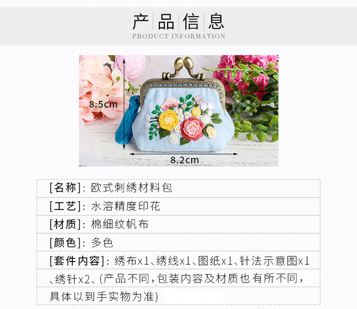 【东方美绣】大口金包刺绣材料包(材料包+辅助绣绷+流苏)