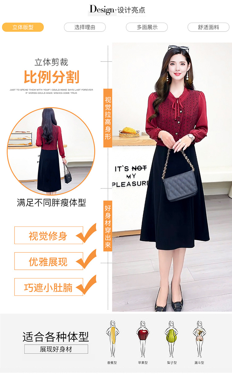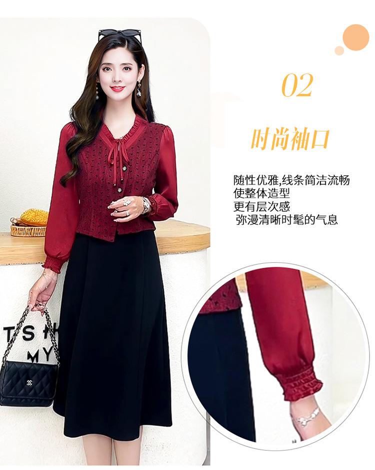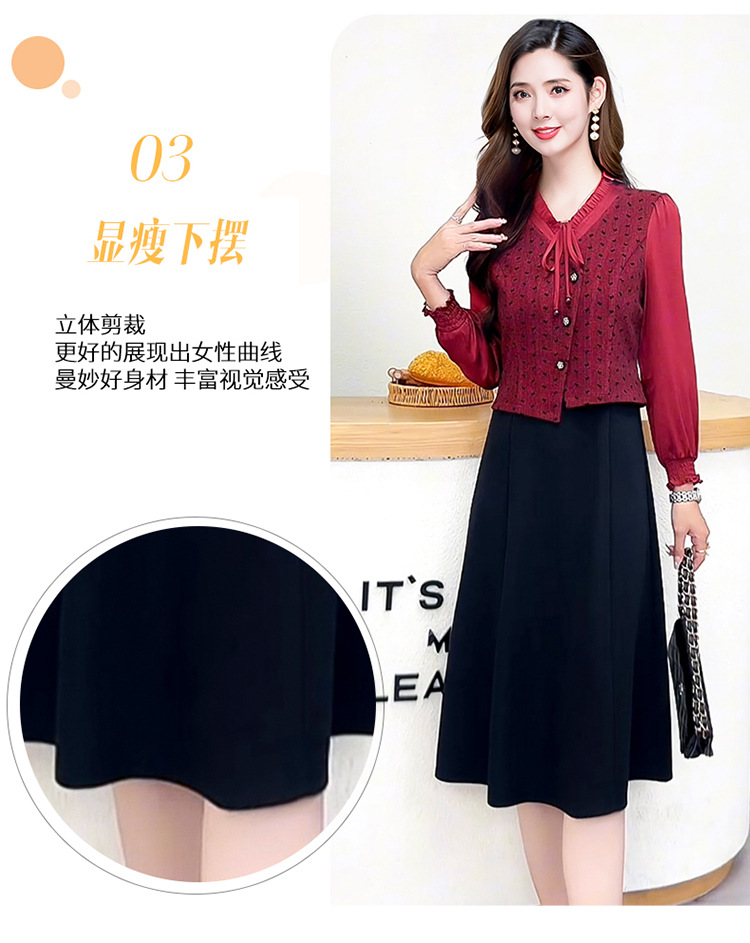 QYMTYH-99H250-Y新款红色连衣裙女装洋气长袖裙拼结假两件中长款高腰A字裙 商品图4