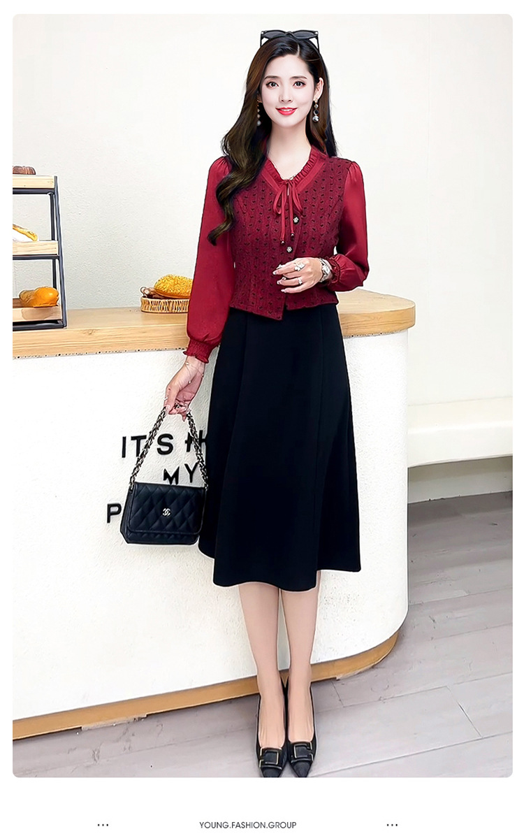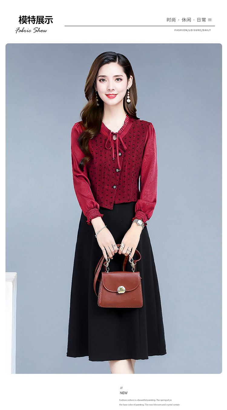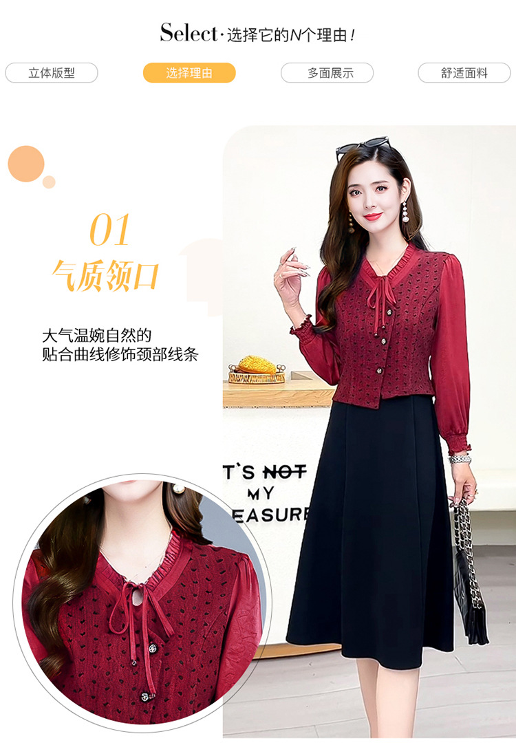 QYMTYH-99H250-Y新款红色连衣裙女装洋气长袖裙拼结假两件中长款高腰A字裙 商品图3