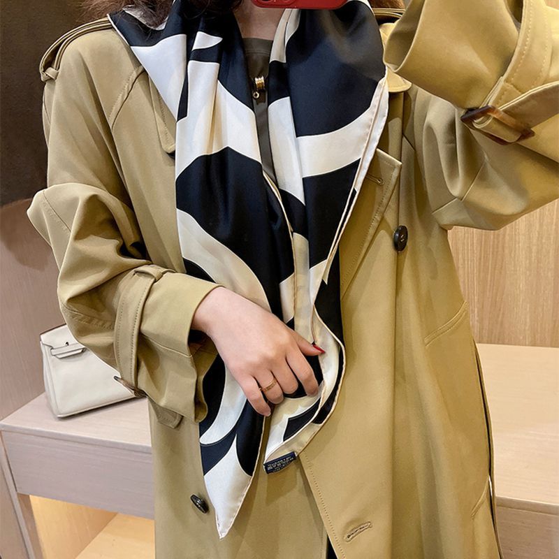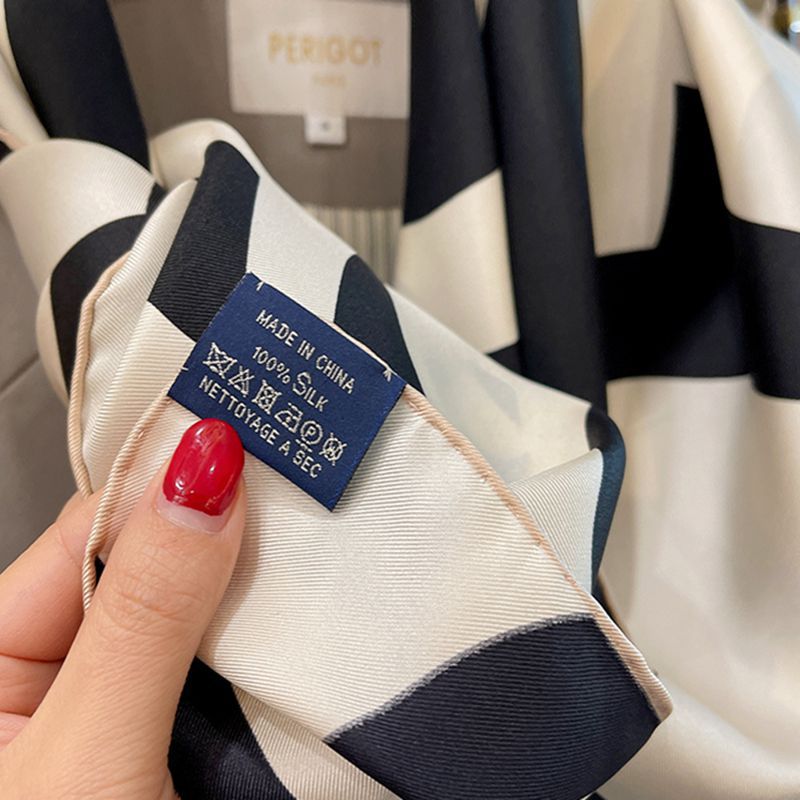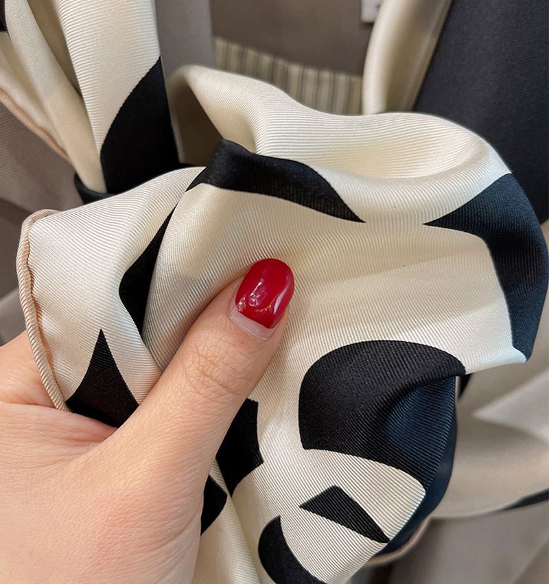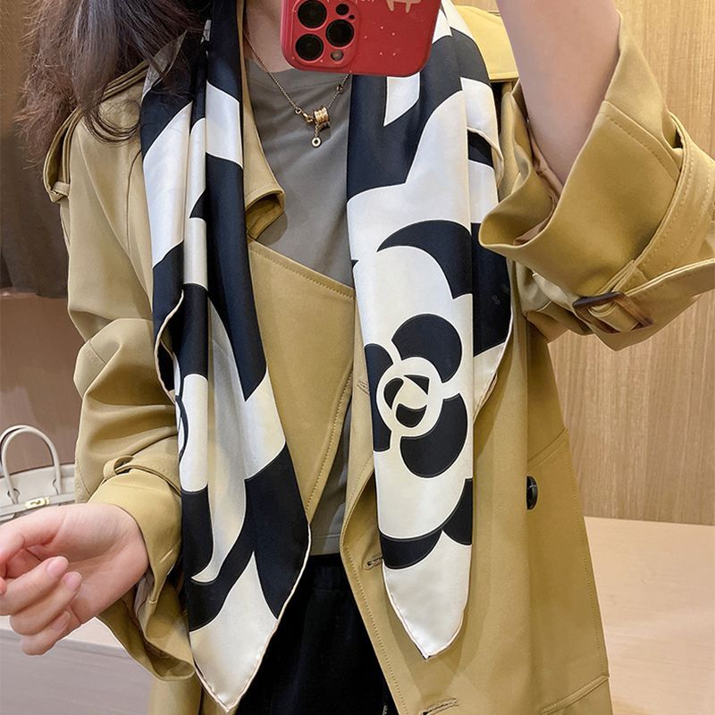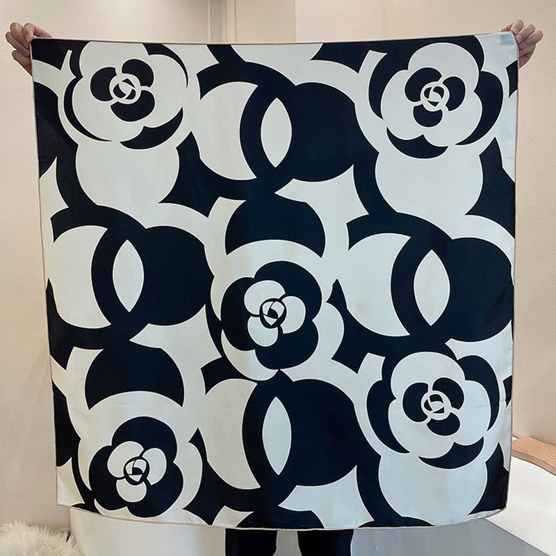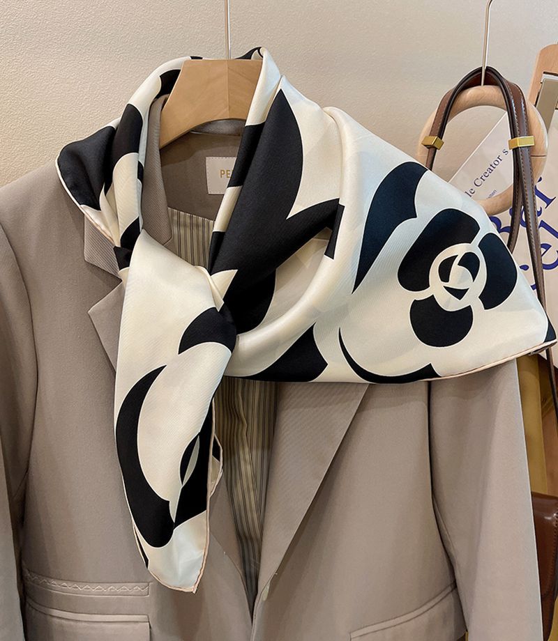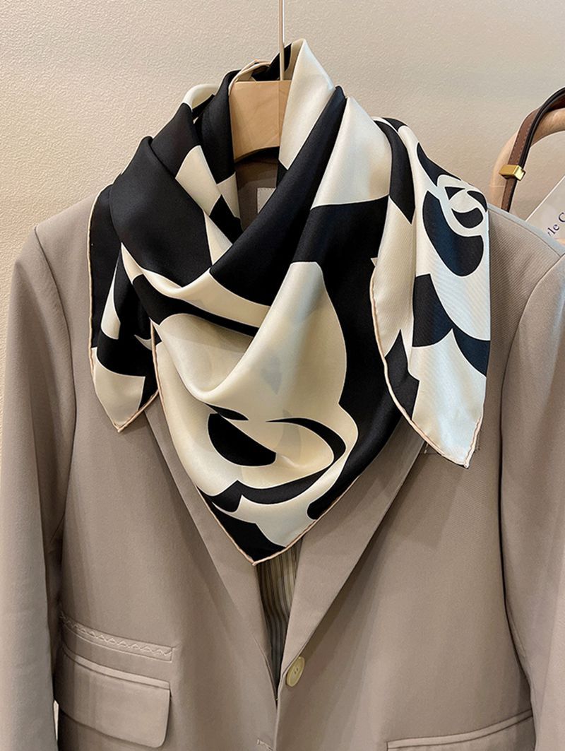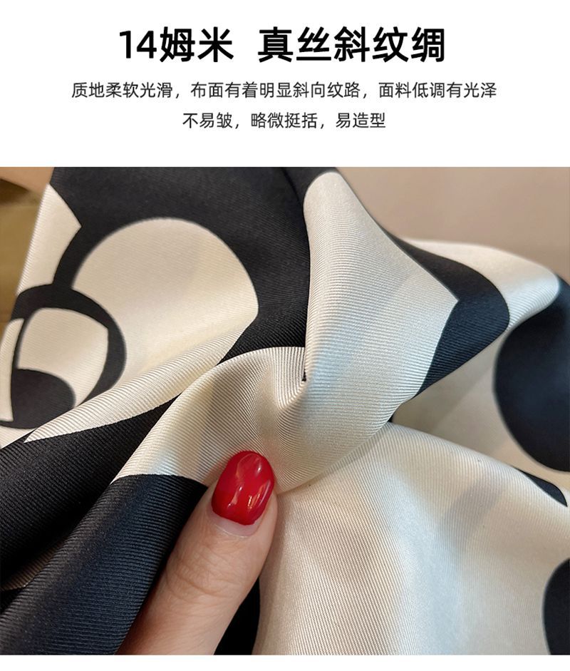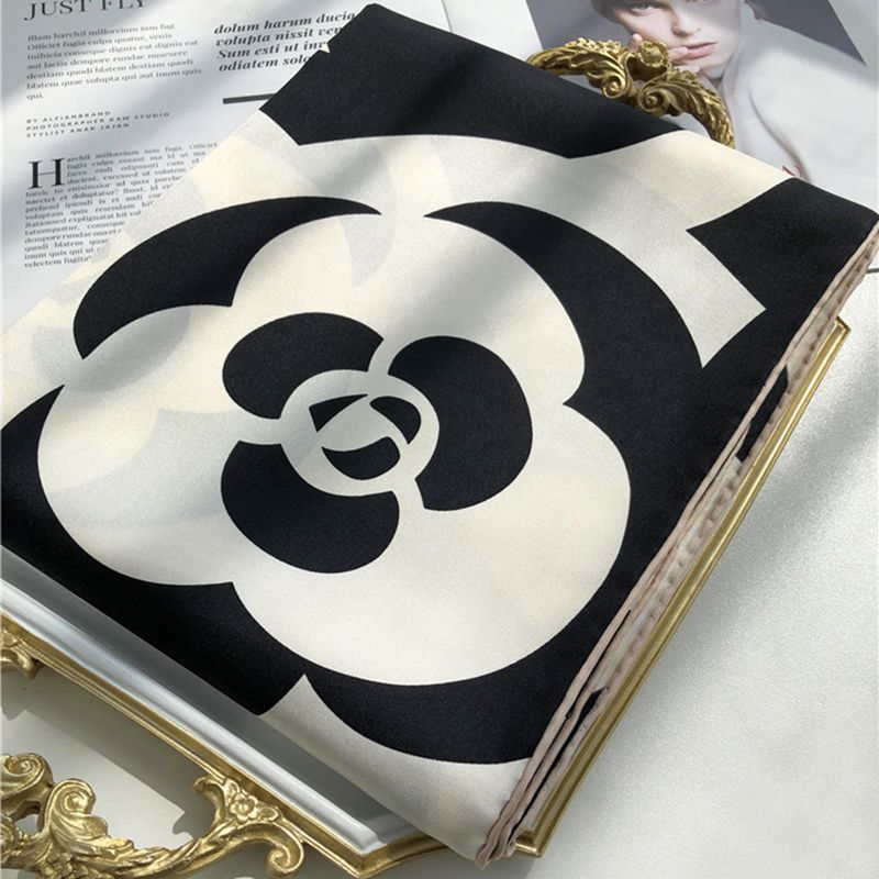 XL- 192676法式经典山茶花黑米雅致篙级斜纹绸 14姆米桑蚕丝斜纹真丝丝巾