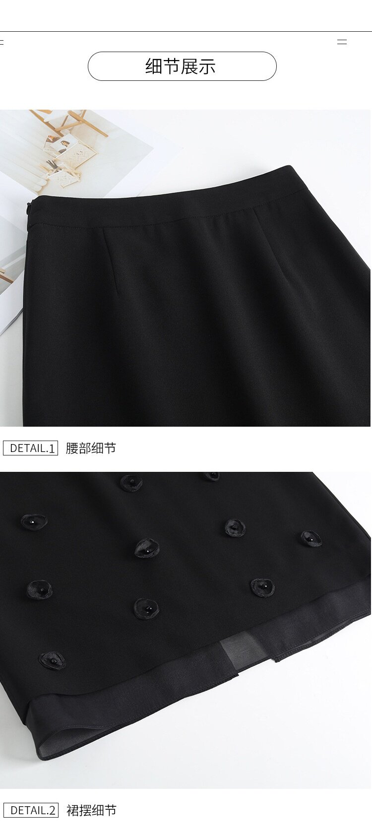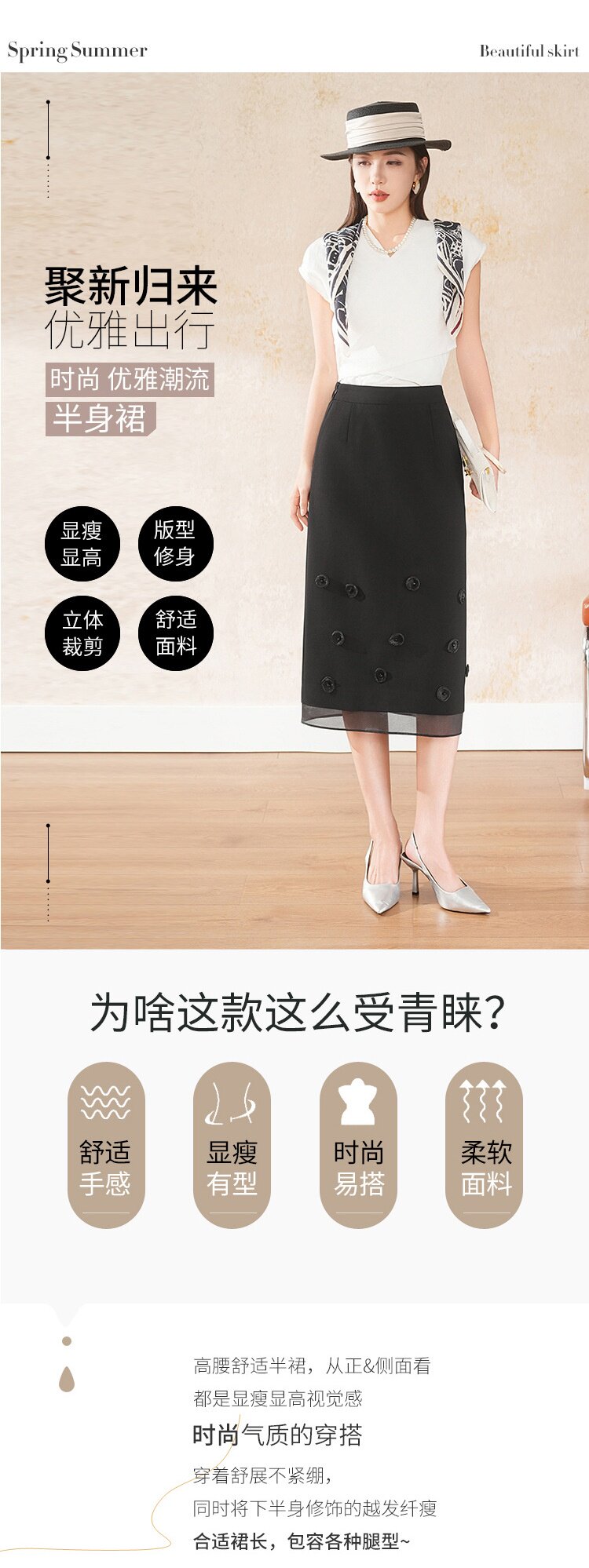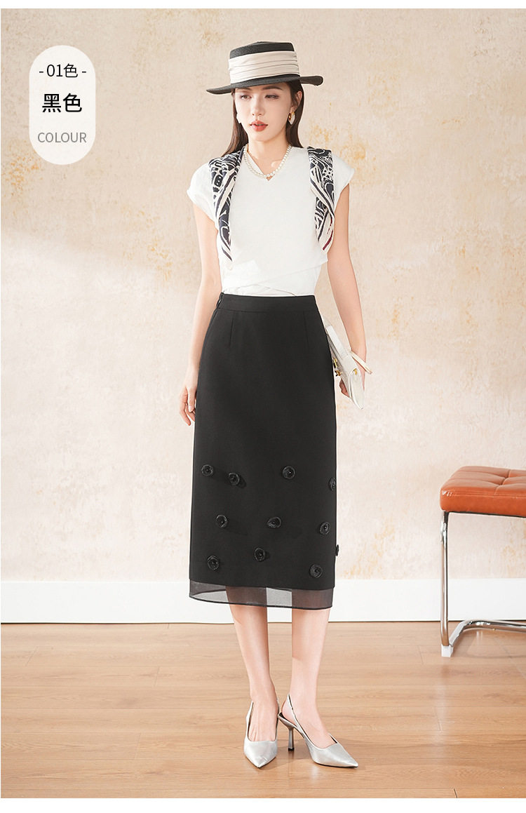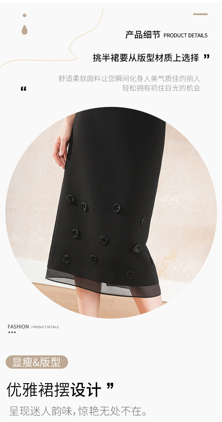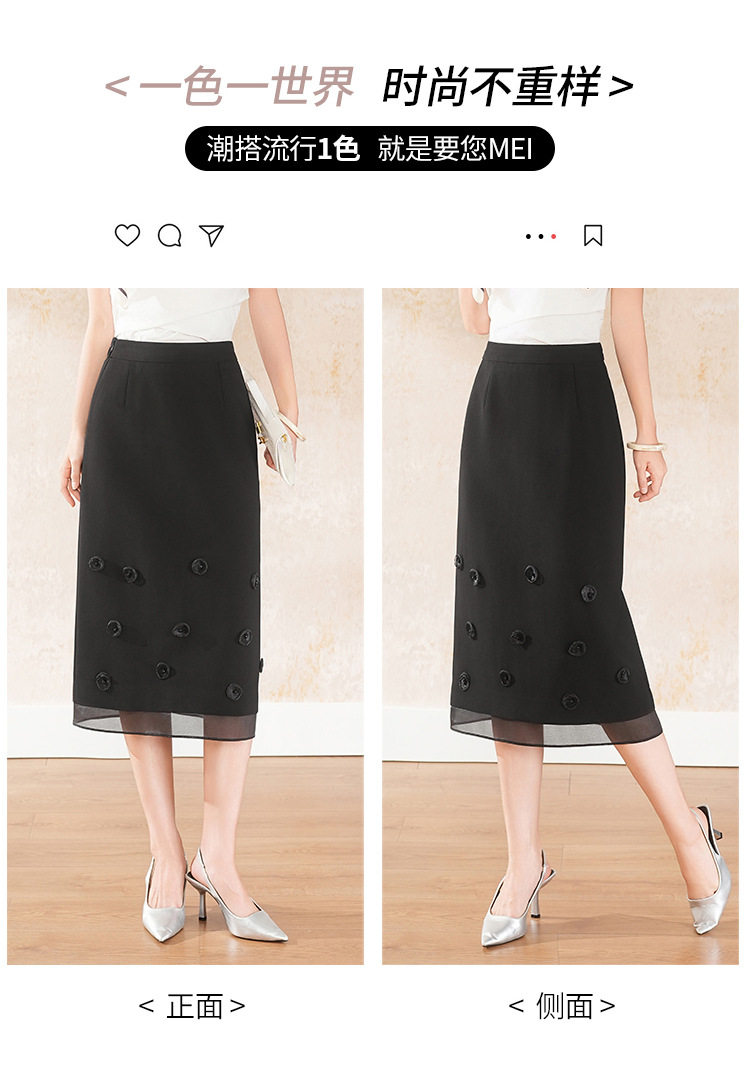 「自」全新升级【铂金会员146/天猫189/差价43】(41440)洛诗琳气质立体花朵半身裙女2026夏季通勤显瘦开叉直筒裙
