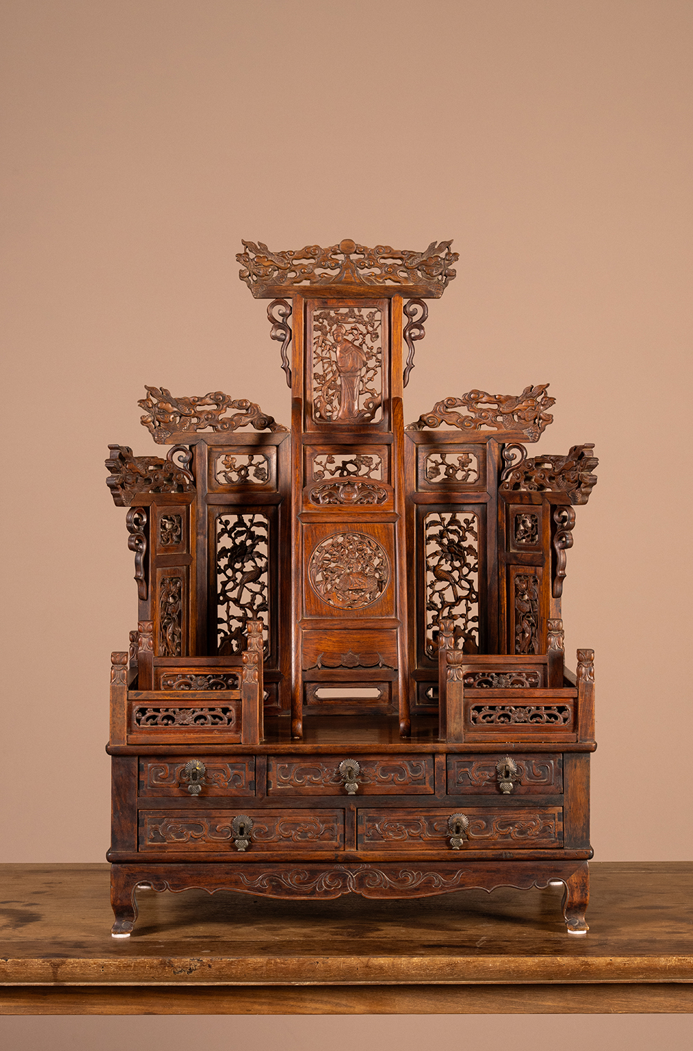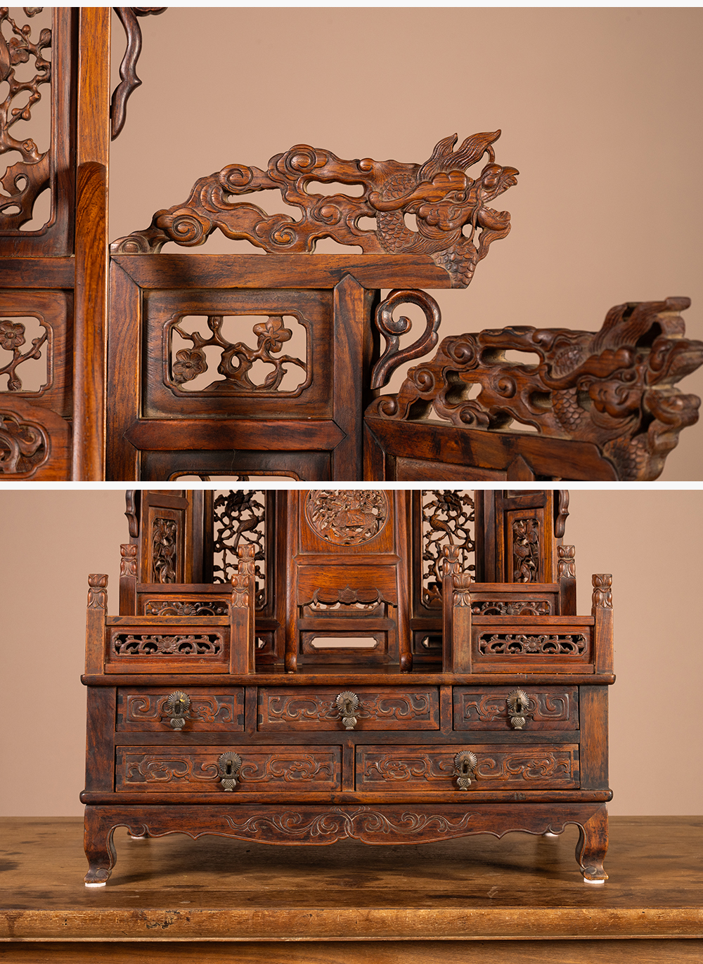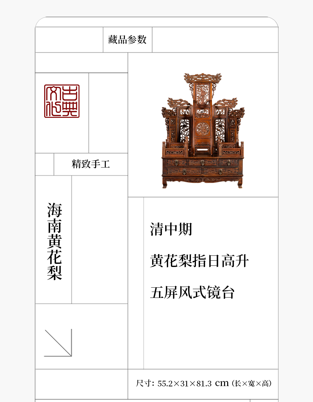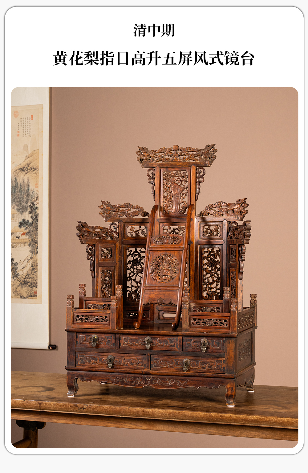 清中期 黄花梨指日高升五屏风式镜台