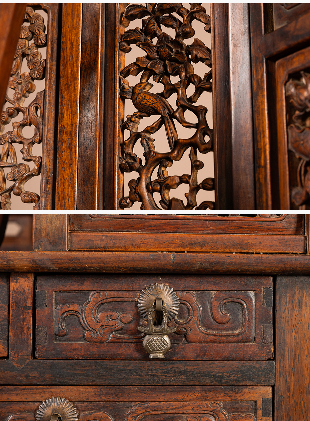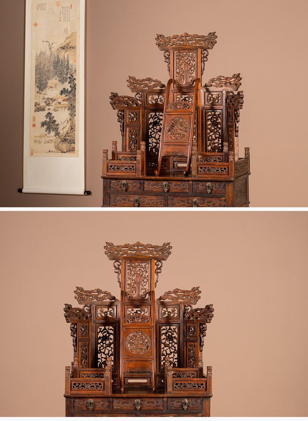 清 黄花梨毗卢顶花卉纹小佛龛