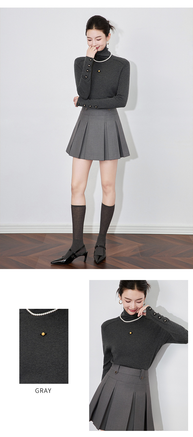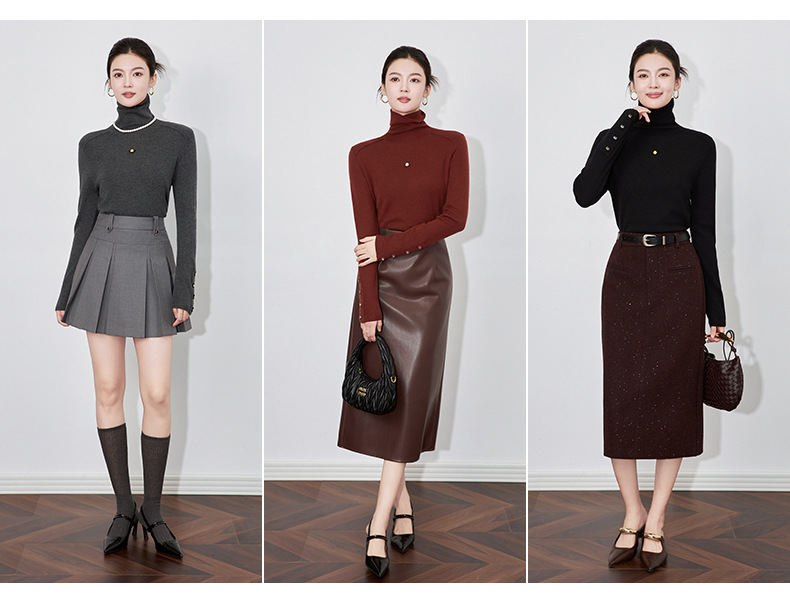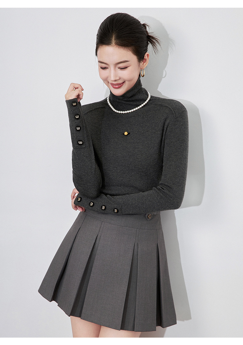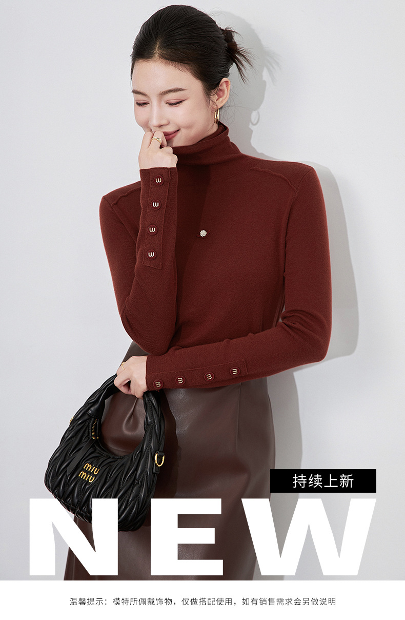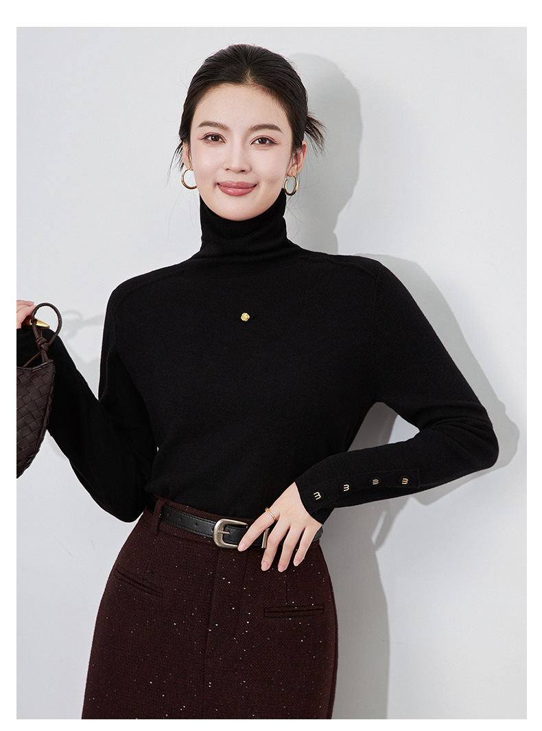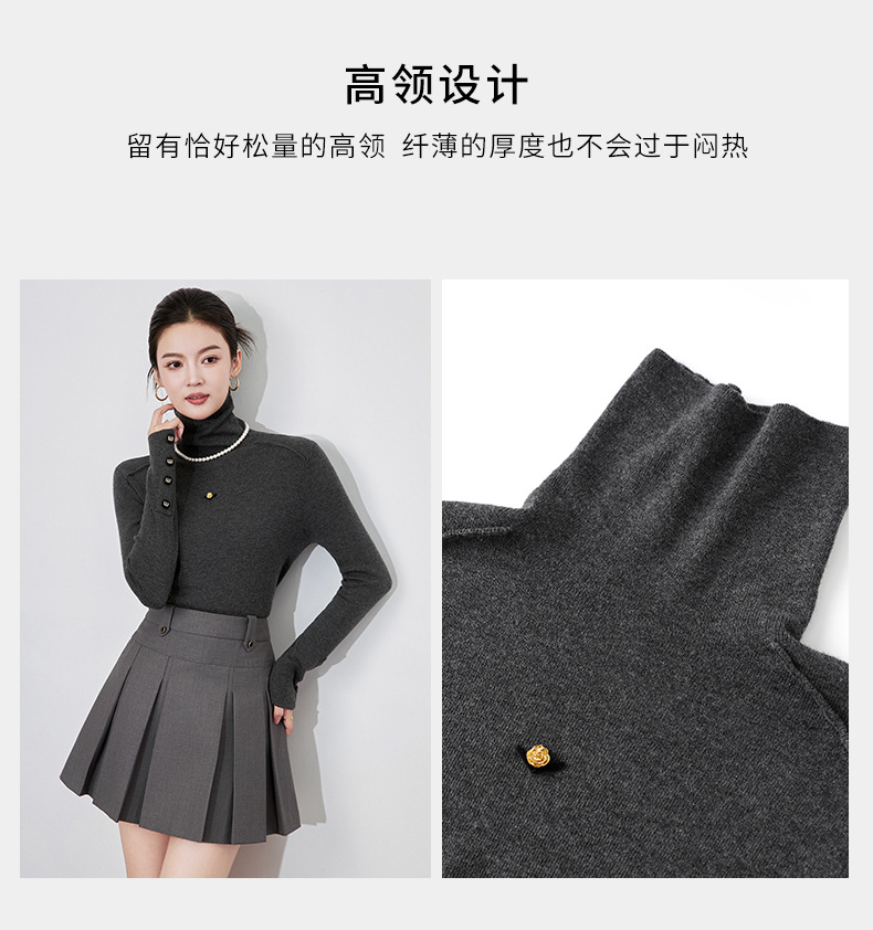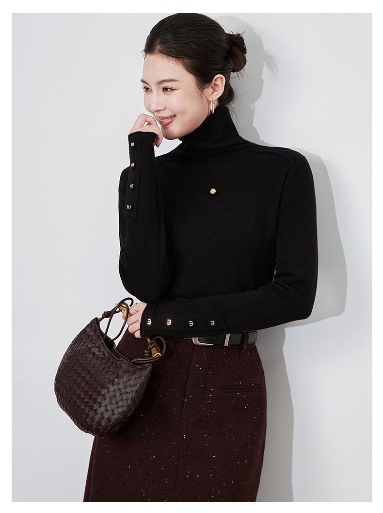 【高货wl】全新升级【铂金会员183/天猫249/差价66】(04939) 洛诗琳简约百搭修身显瘦上衣高级感一粒金属花朵扣针织衫
