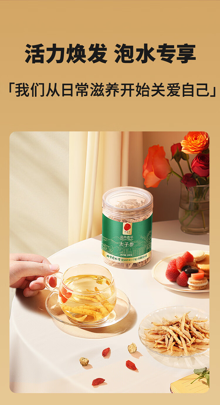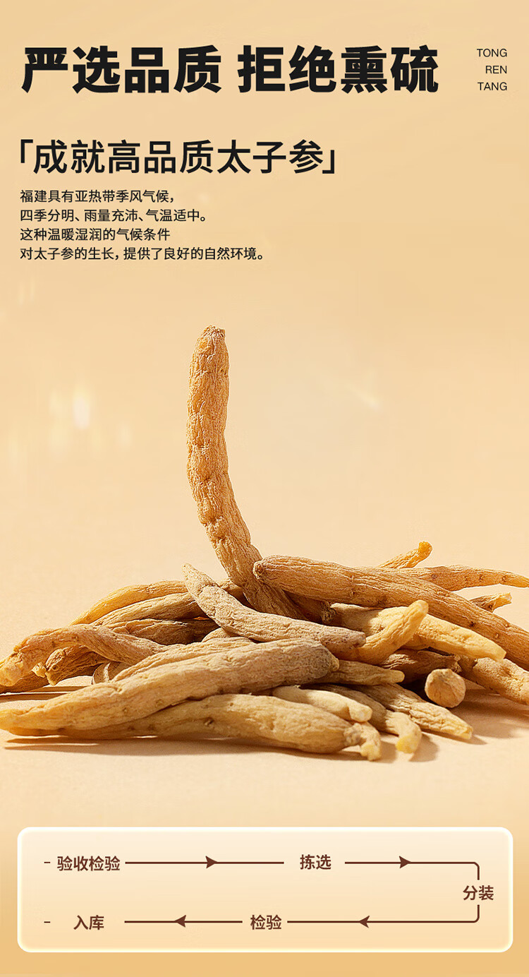 【正宗同仁堂品牌】北京同仁堂 太子参100克 福建高品质太子参 拒绝熏硫 SY