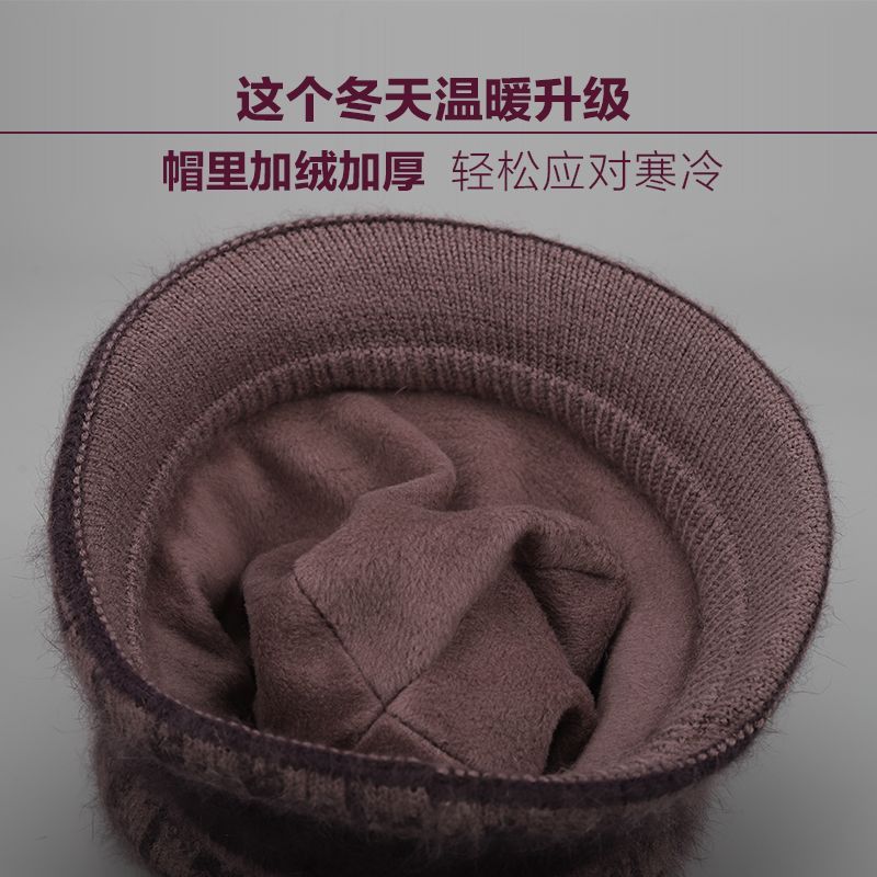 DD-冬季妈妈帽子加厚保暖盆帽中老年奶奶针织棉帽老太太毛线帽