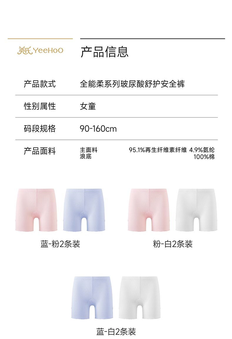 英氏女童防走光安全裤内裤二合一女孩打底裤夏季中大童莫代尔短裤