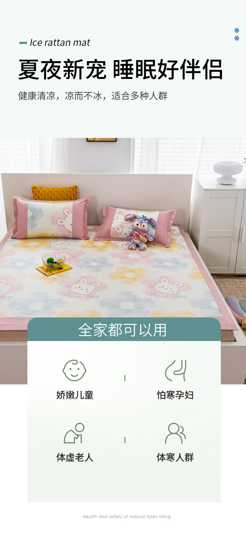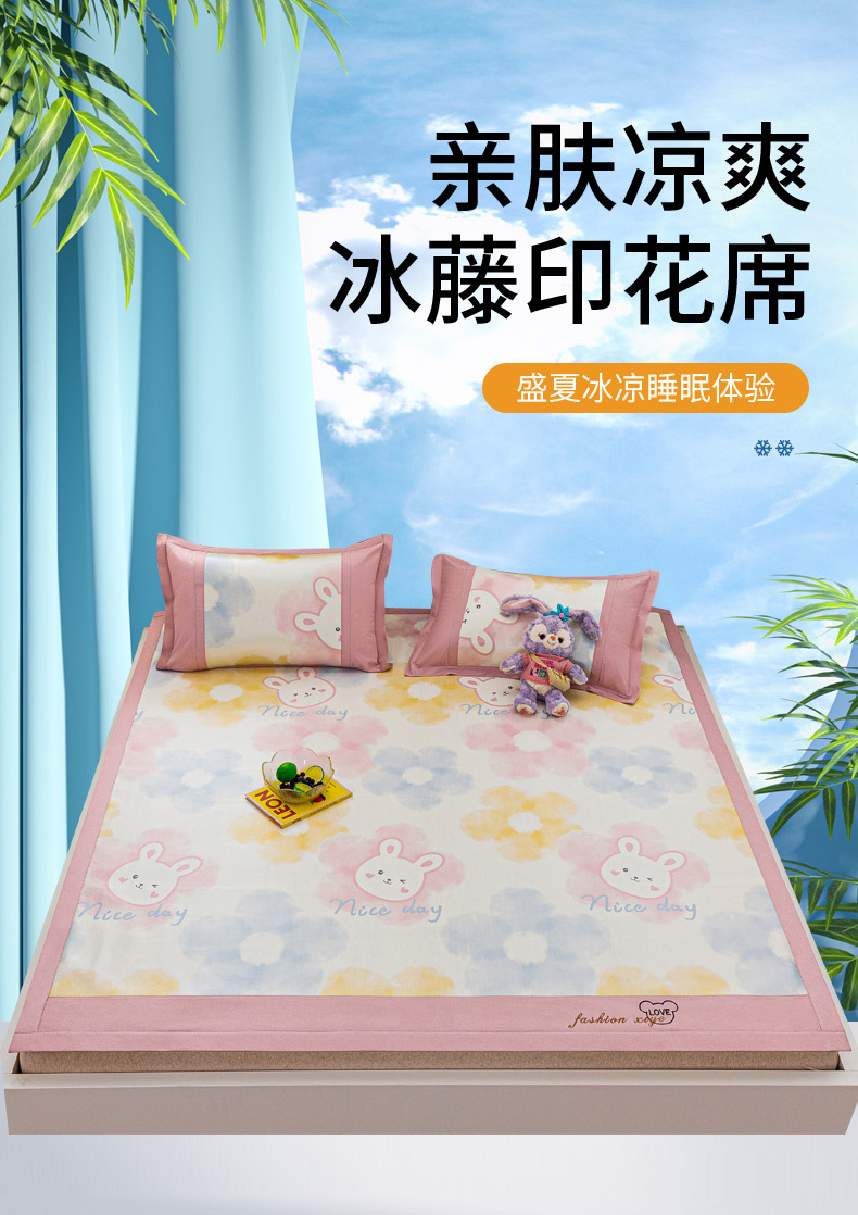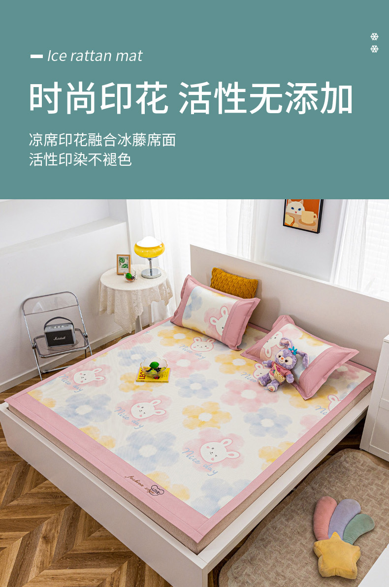 【维科家纺】印花冰藤席夏凉席冰丝席两/三件套儿童宿舍学生可折叠软席子