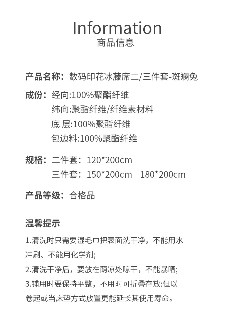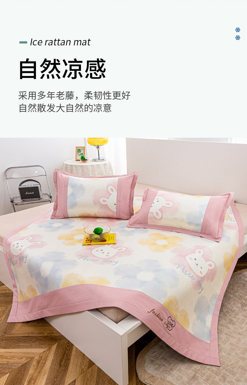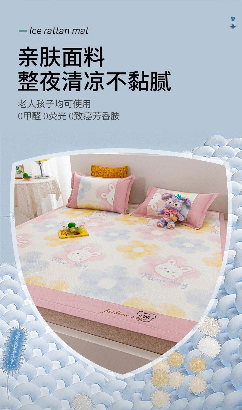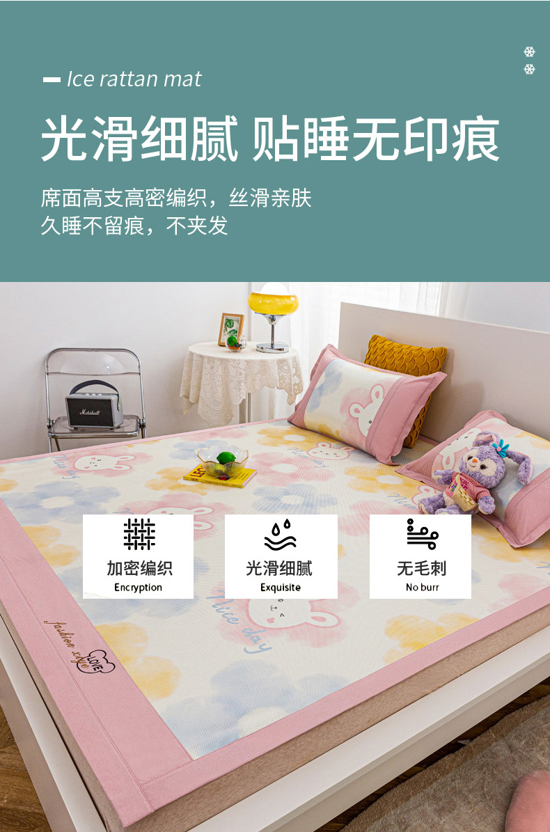 【维科家纺】印花冰藤席夏凉席冰丝席两/三件套儿童宿舍学生可折叠软席子