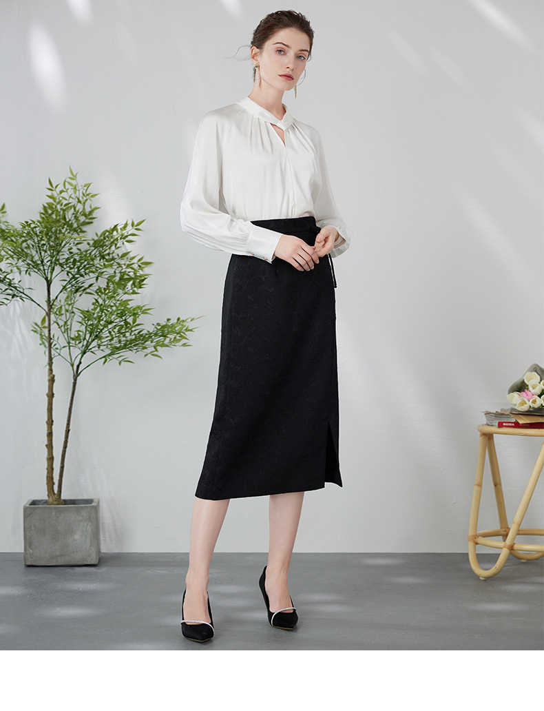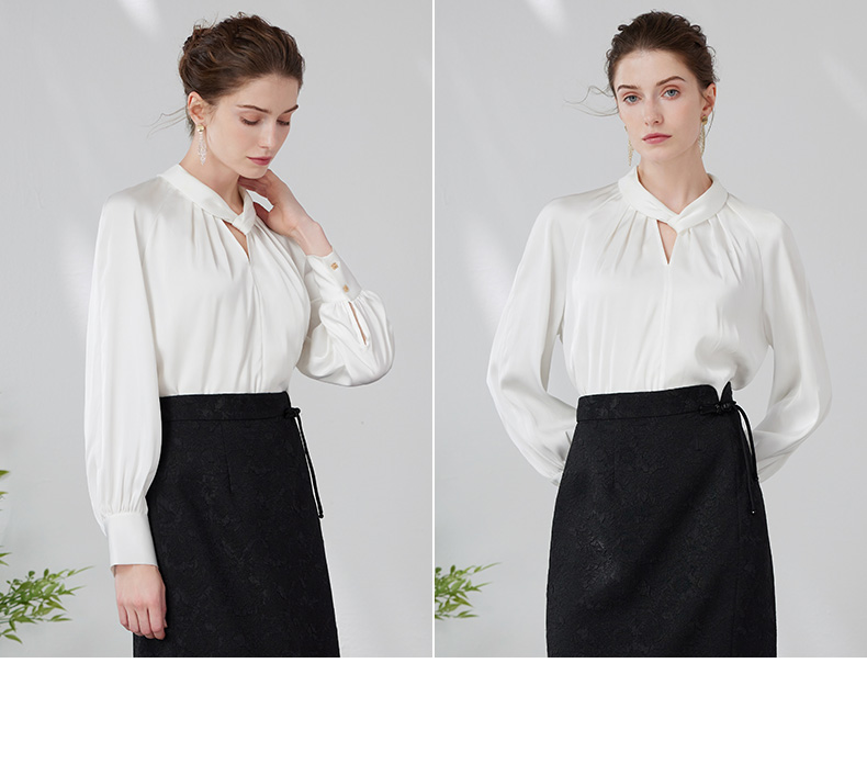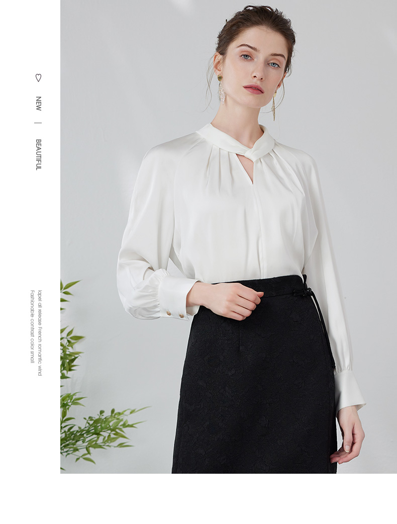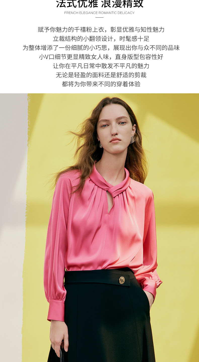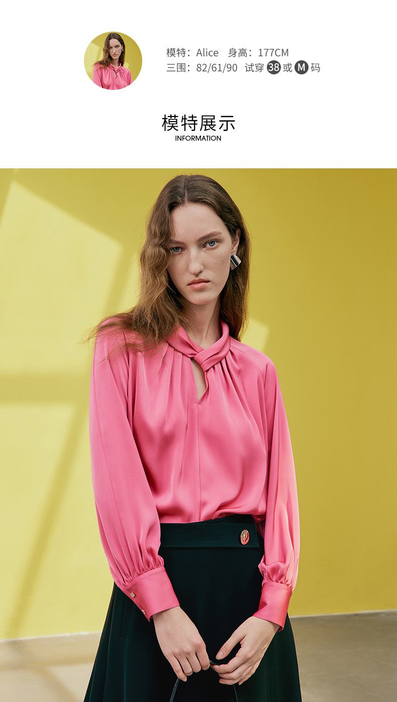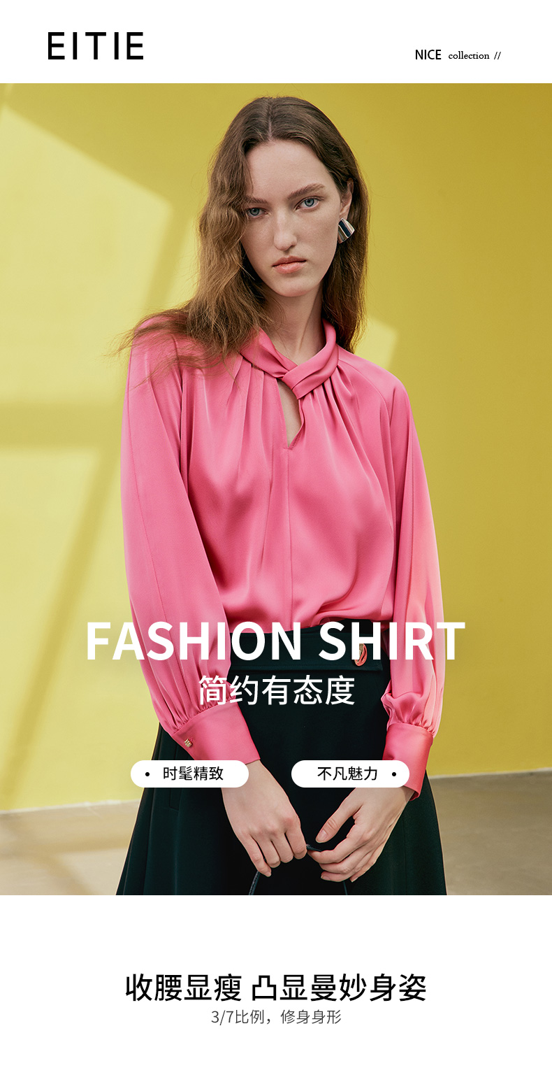 EITIE爱特爱秋季新款温柔百搭显瘦飘带上衣衬衫C2309202