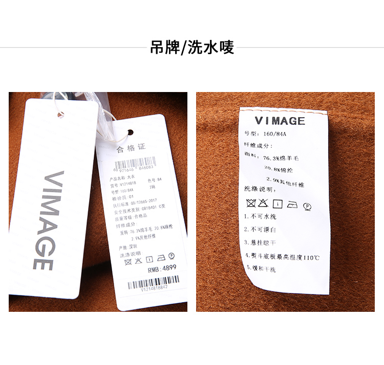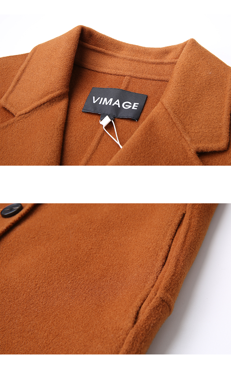VIMAGE纬漫纪冬季新款翻领中长款保暖翻领大衣V1214818