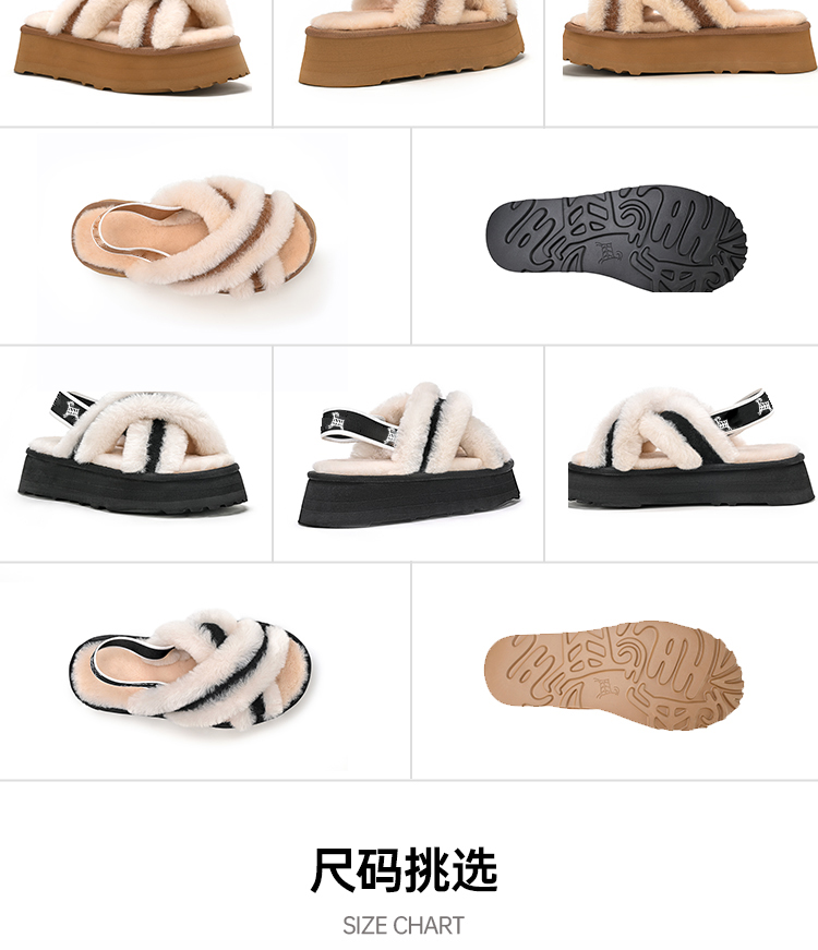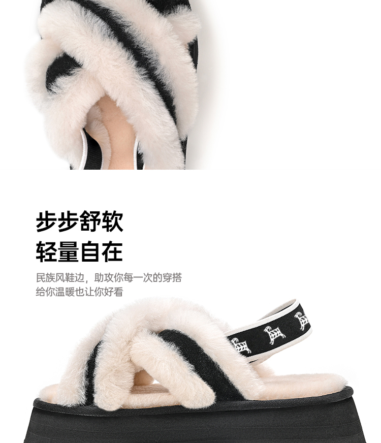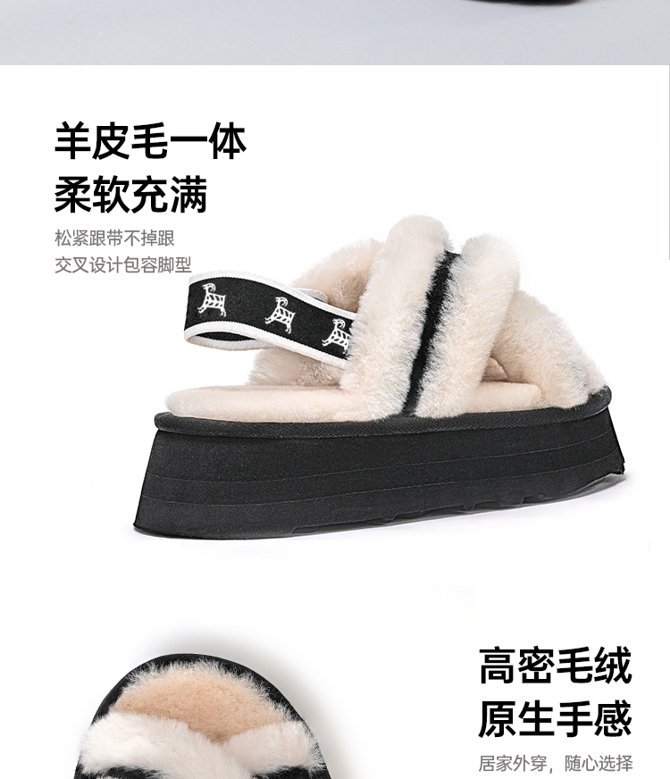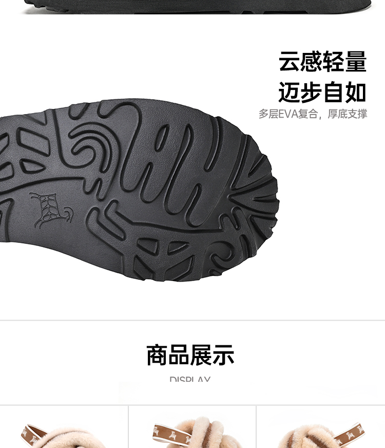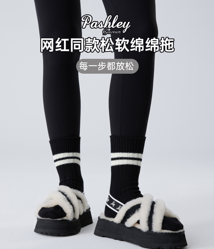 【梅花出品】帕奢利女款加厚高帮保暖厚底羊毛拖鞋HZ005L
