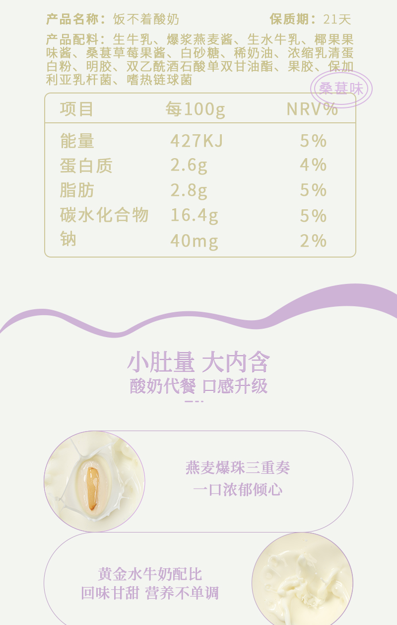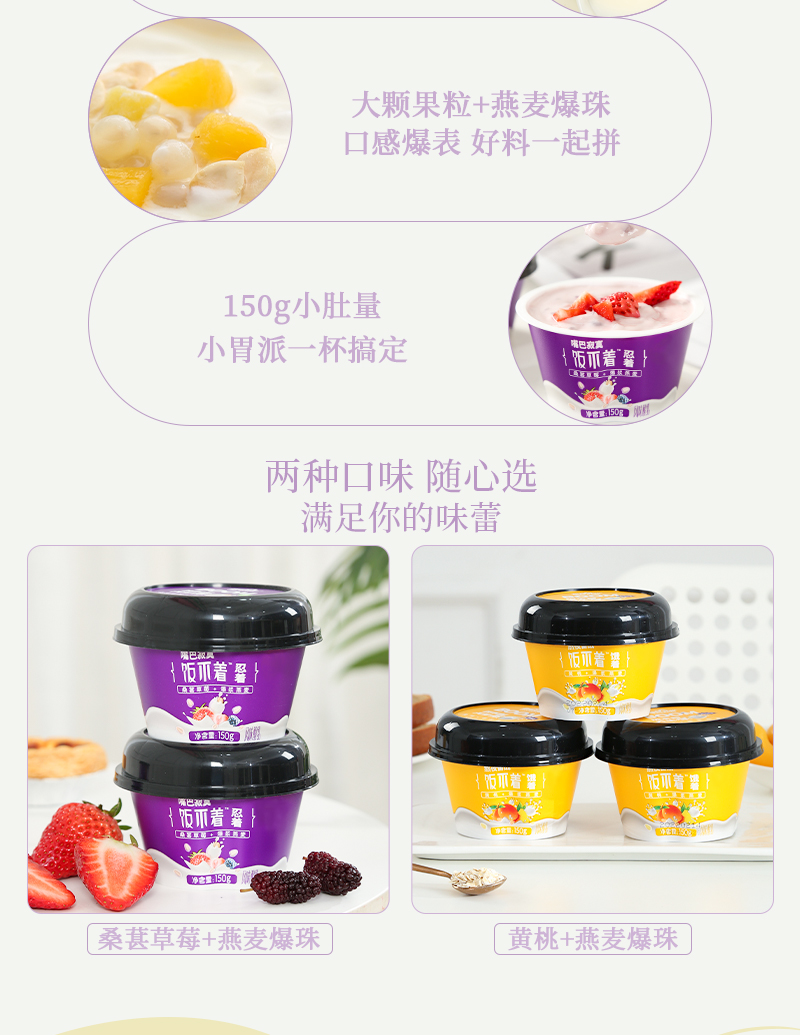 皇氏水牛 饭不着爆浆燕麦酸奶 150g*10 黄桃味 桑葚草莓味