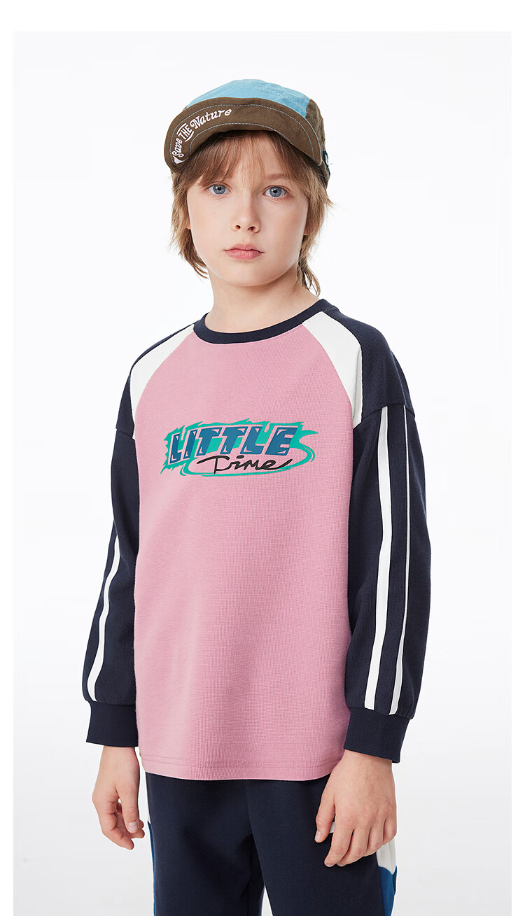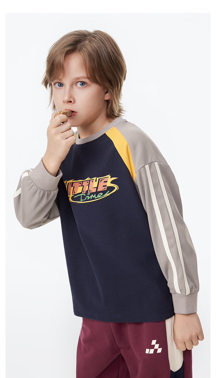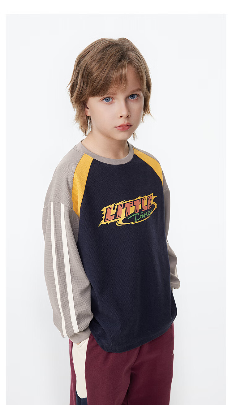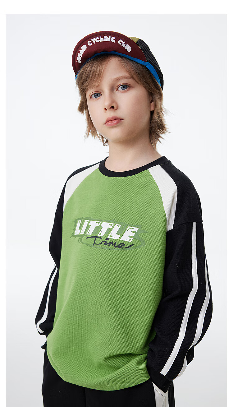 【MQD】【170】童装男童华夫格撞色拼块T恤春装新款儿童插肩袖上衣