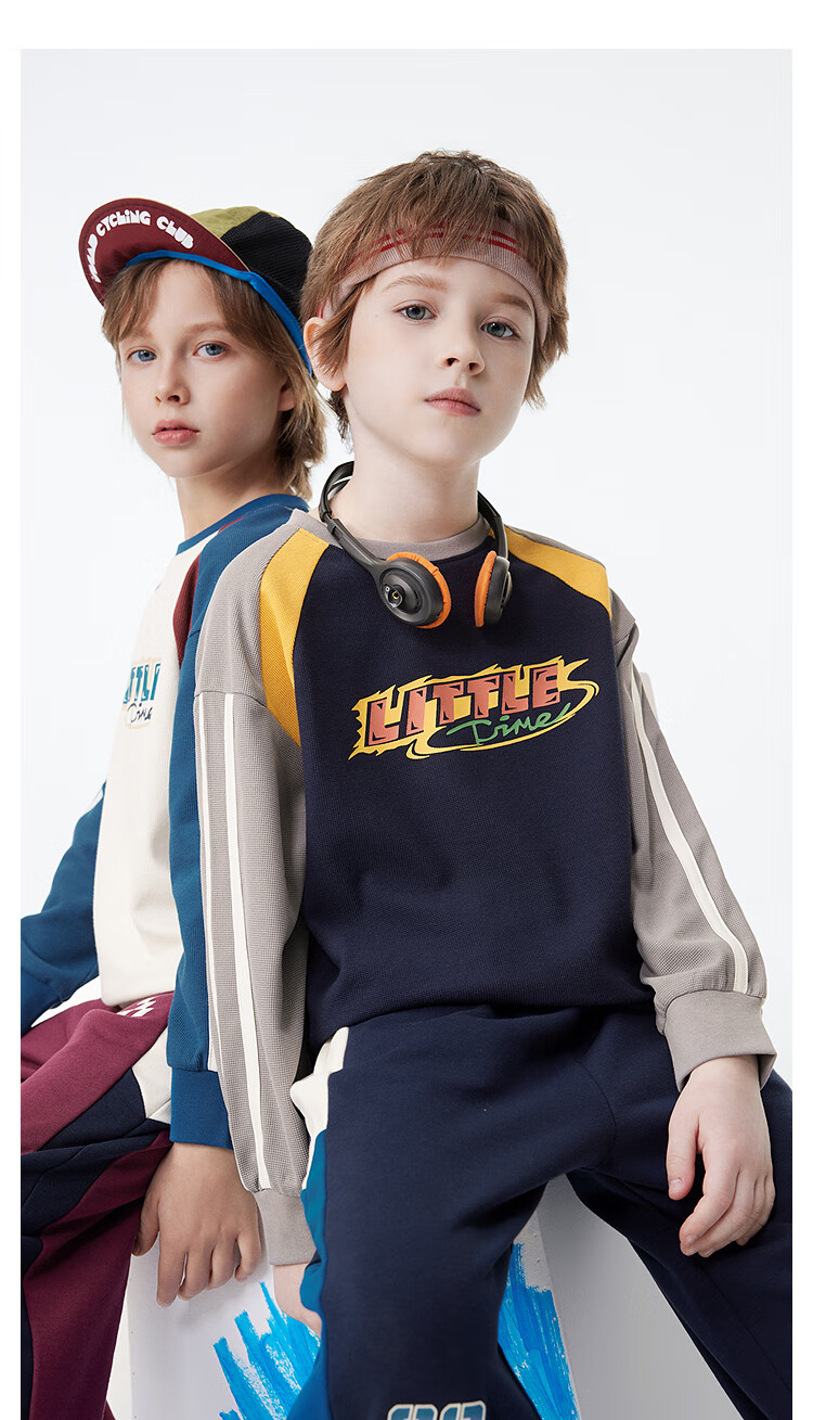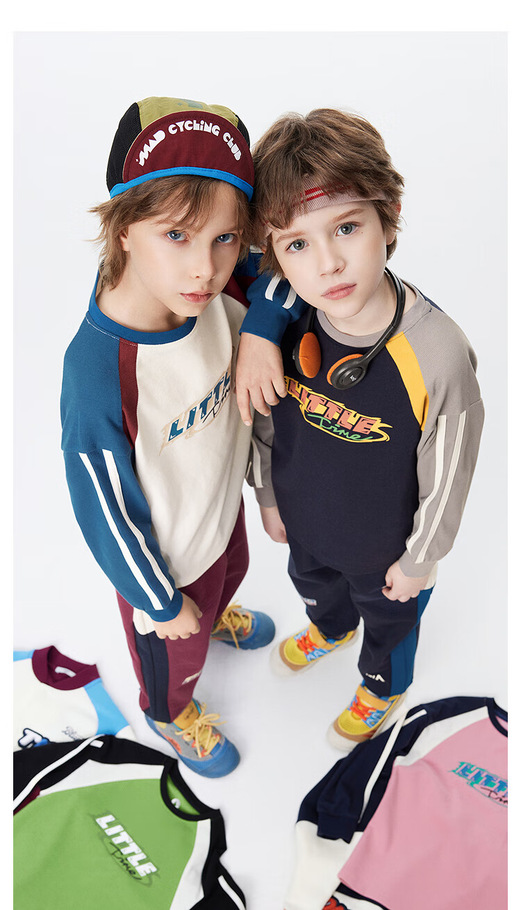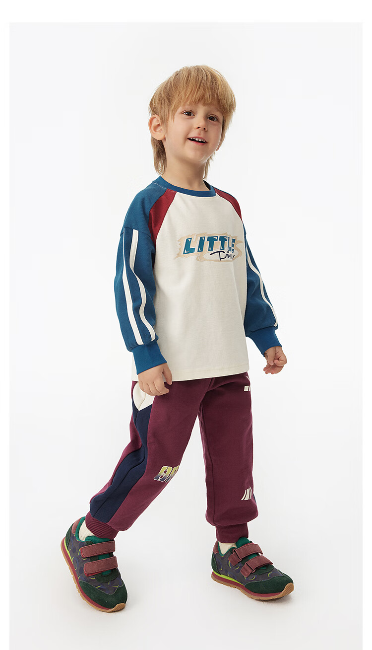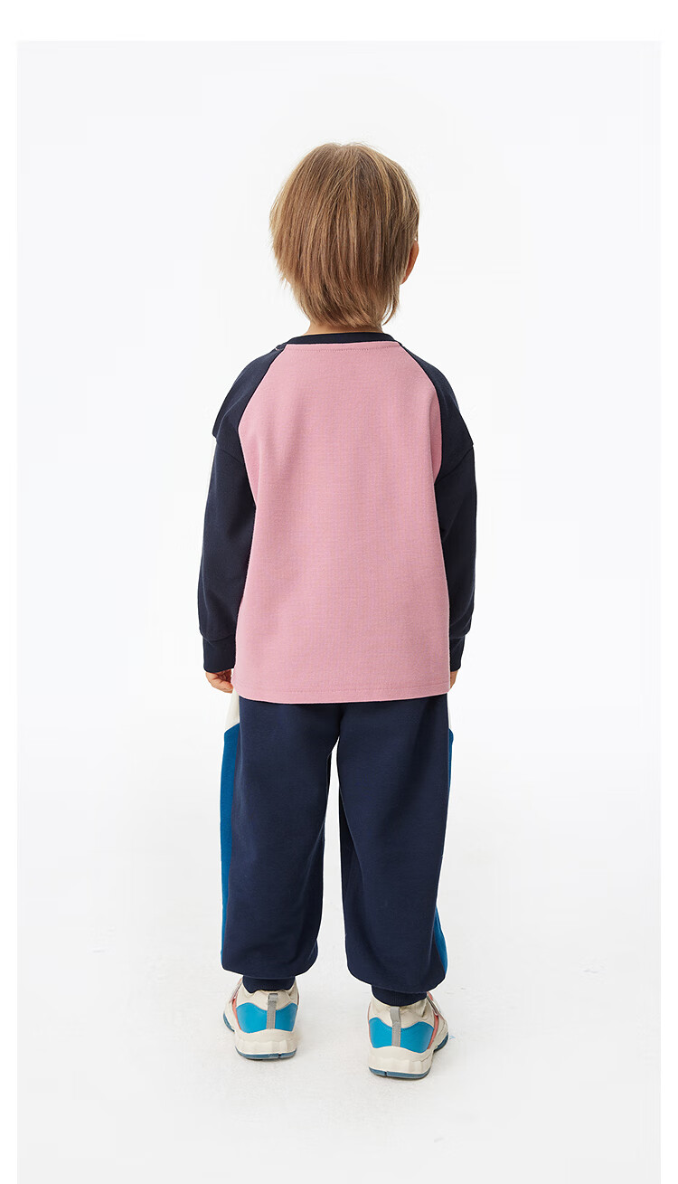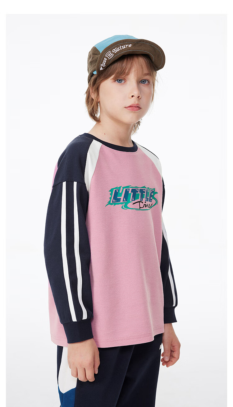 【MQD】【170】童装男童华夫格撞色拼块T恤春装新款儿童插肩袖上衣