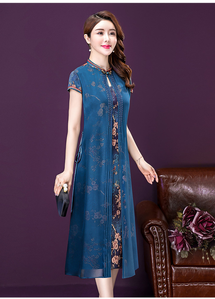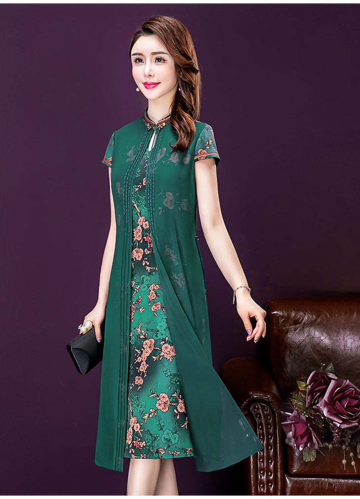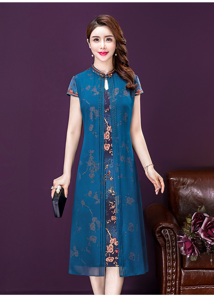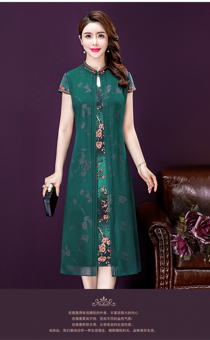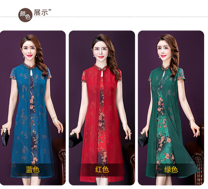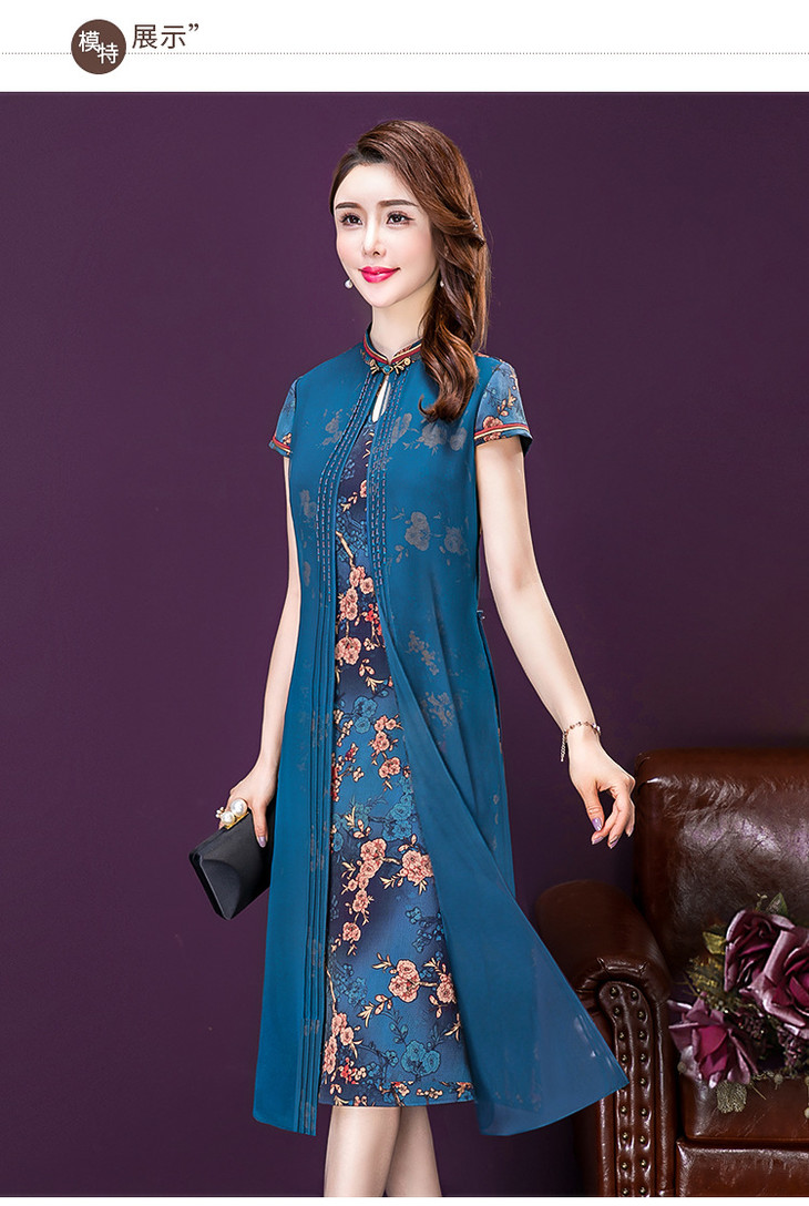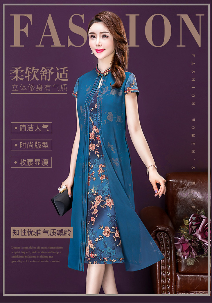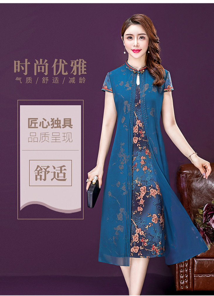 YMR-8322洋气时尚,大码印花假两件连衣裙