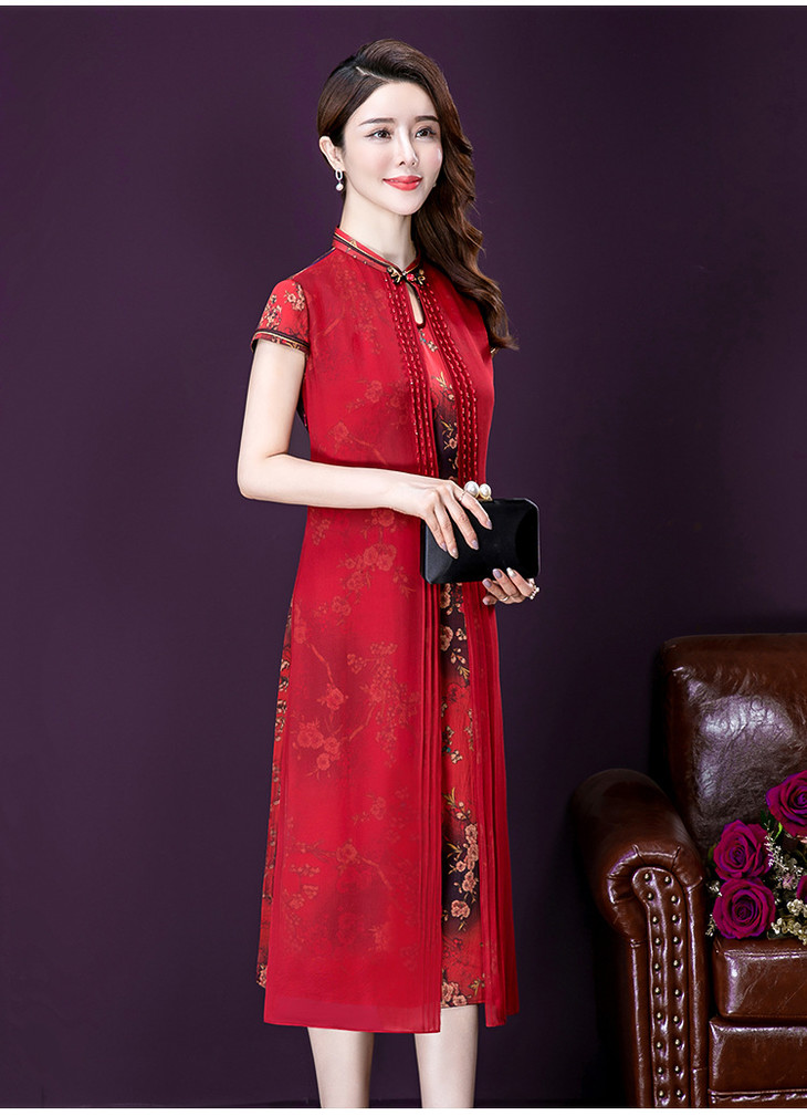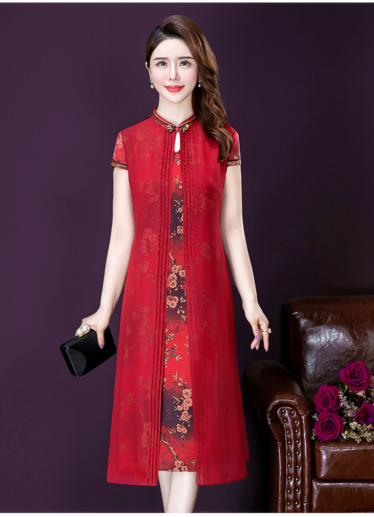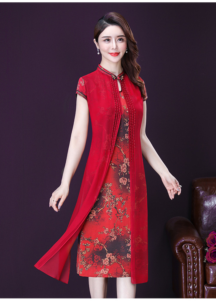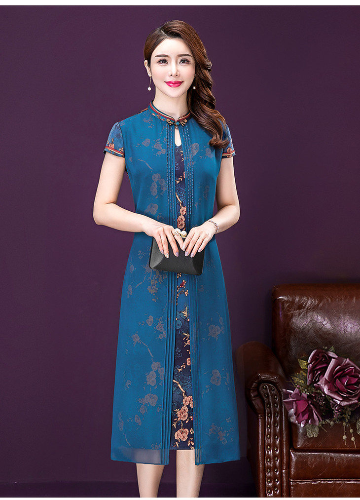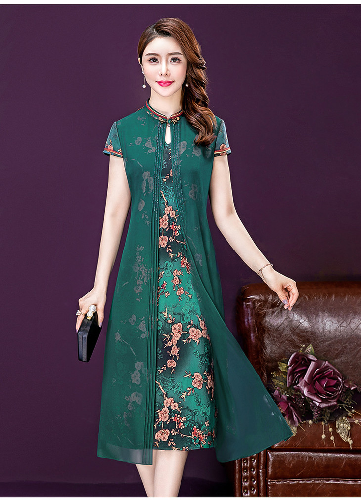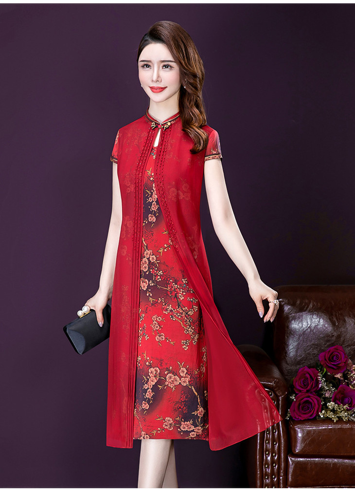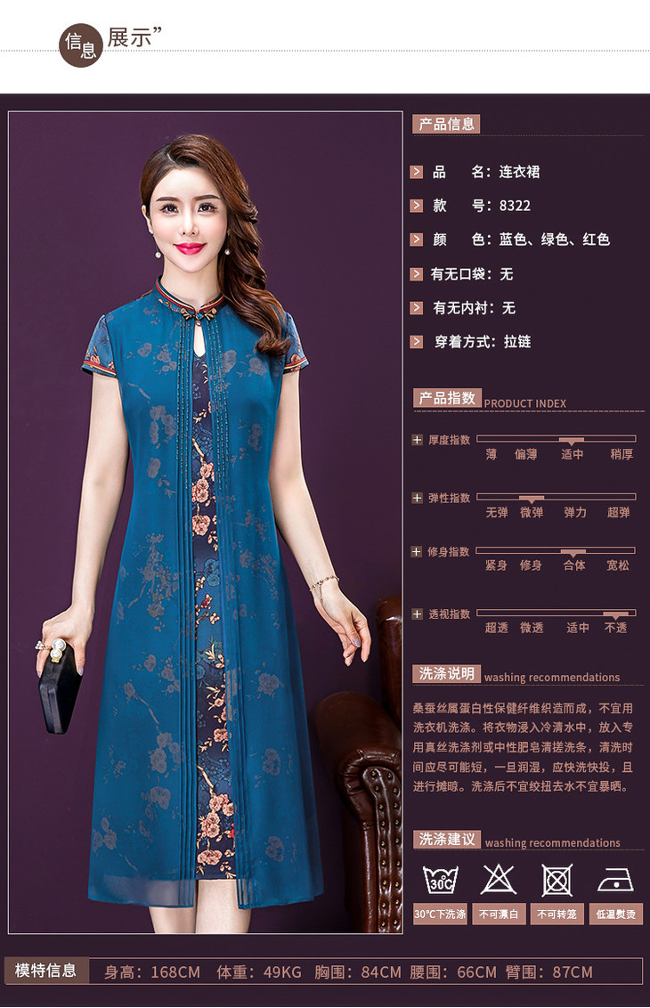 YMR-8322洋气时尚,大码印花假两件连衣裙