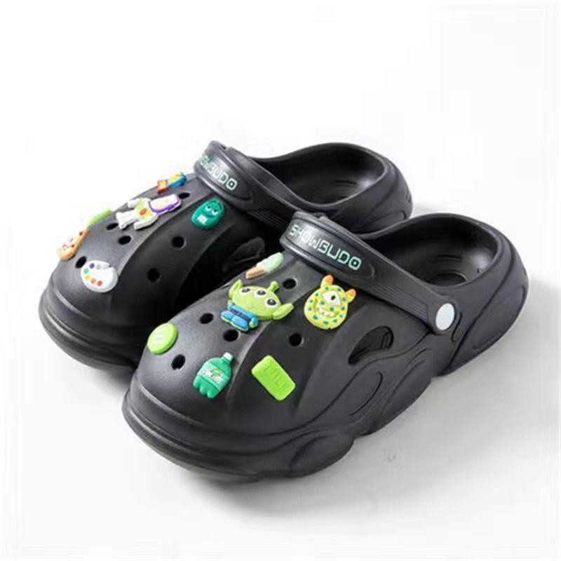 洞洞鞋女夏季卡通可爱三眼仔学生情侣百搭芝麻街防滑外穿凉拖鞋男