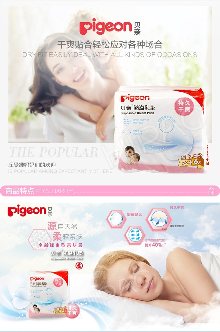 【一般贸易】贝亲Pigeon 防溢乳垫 72+6片装 PL162