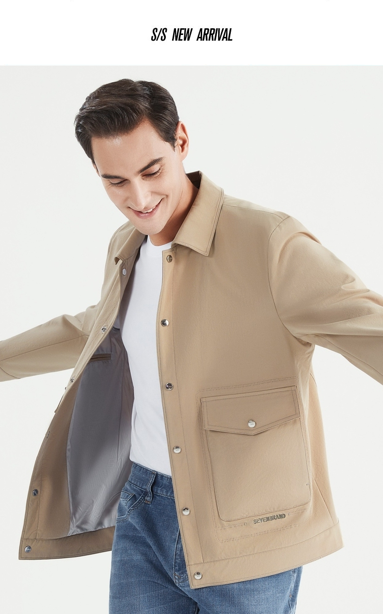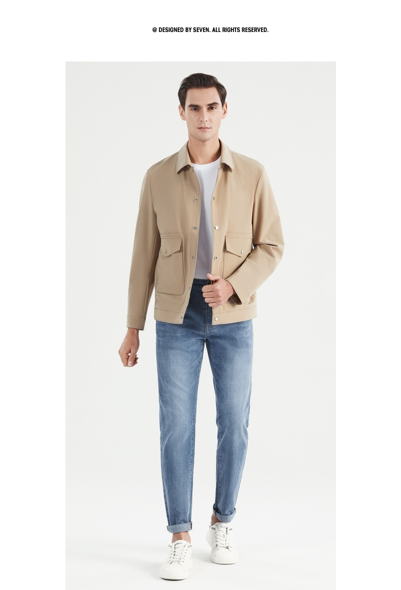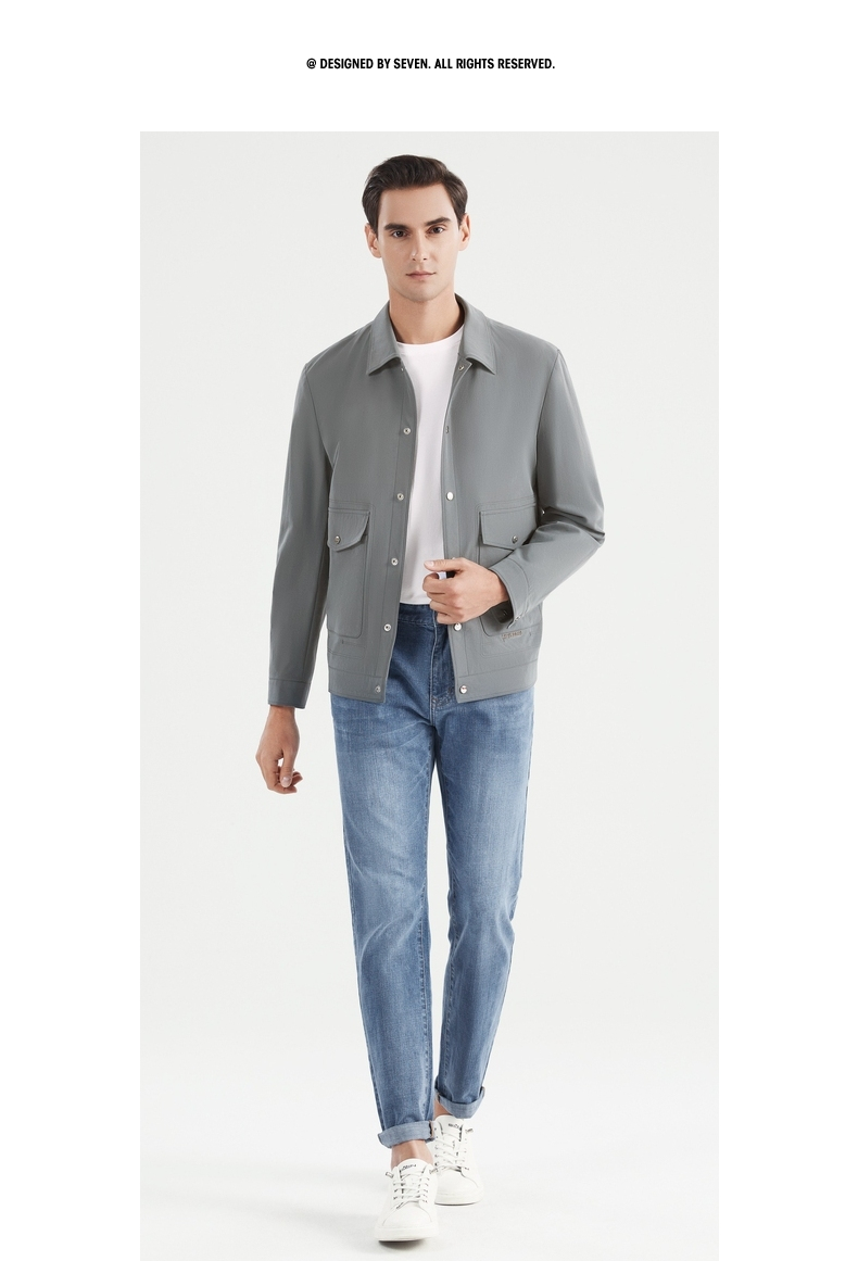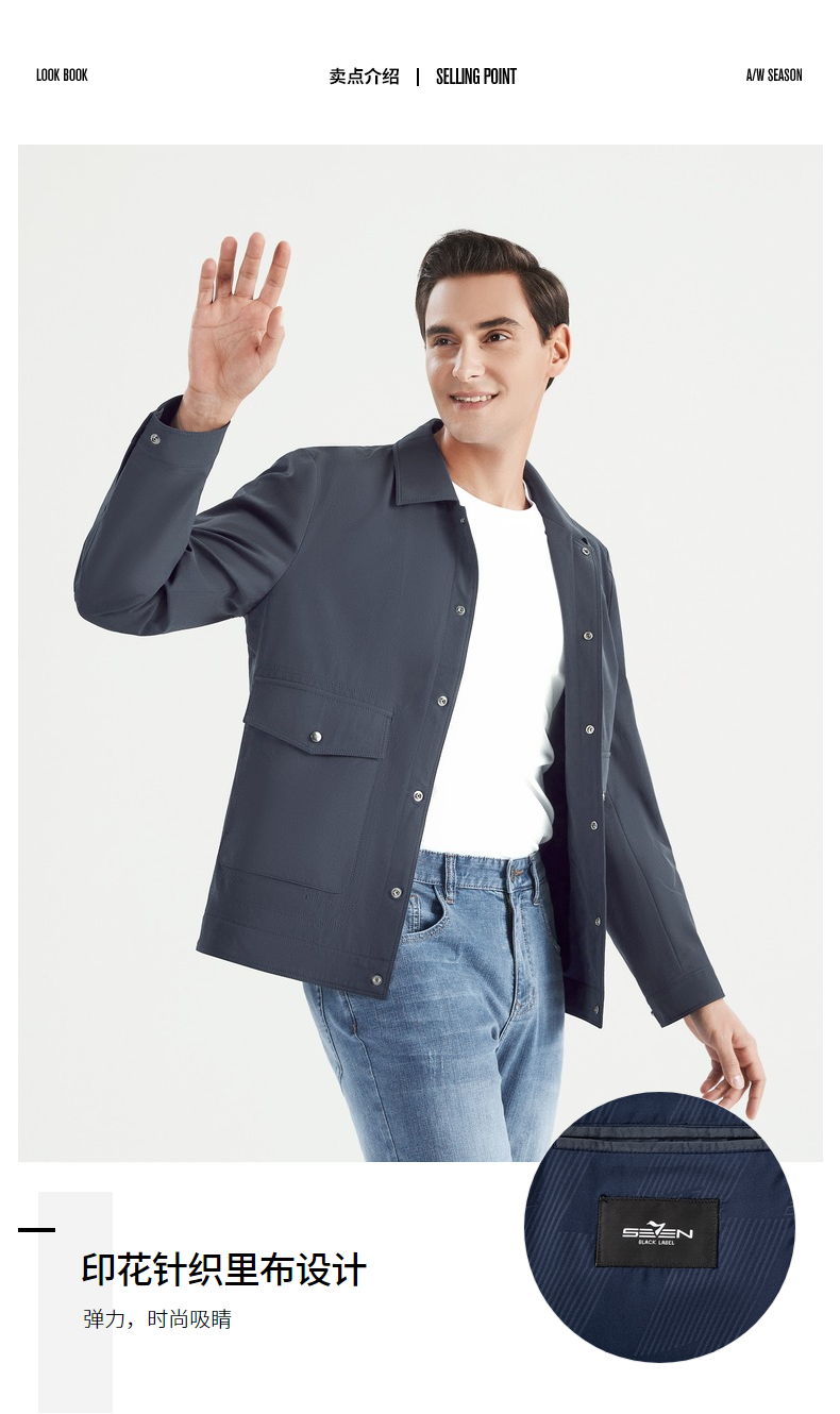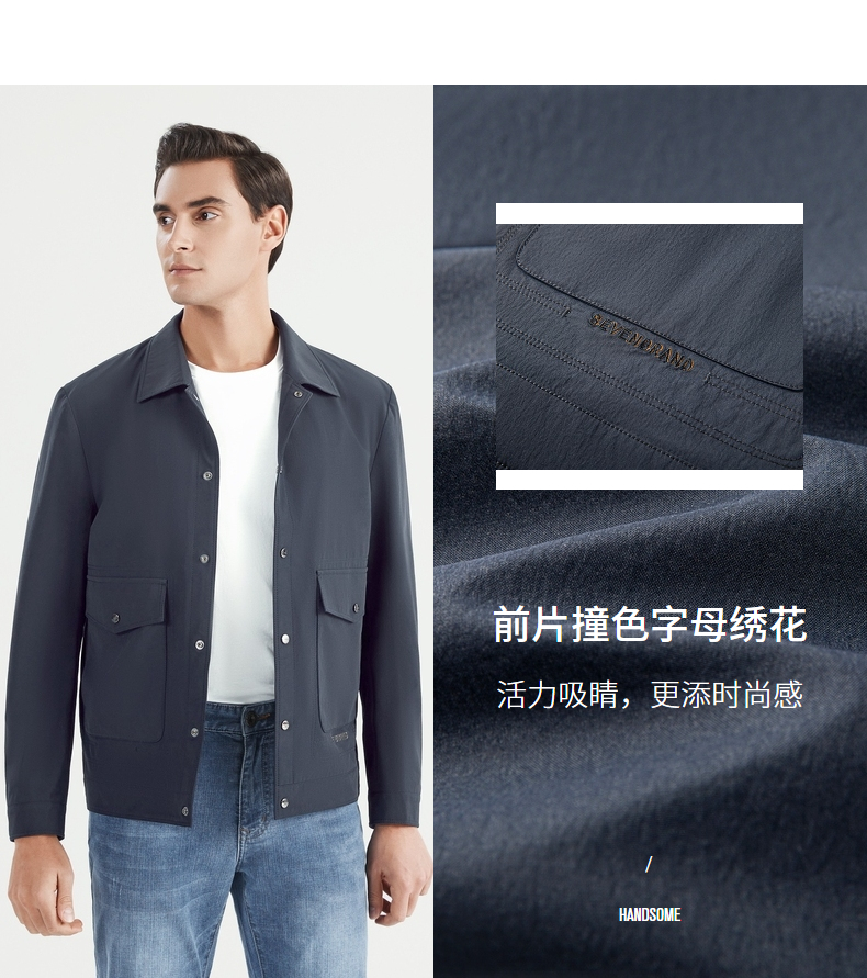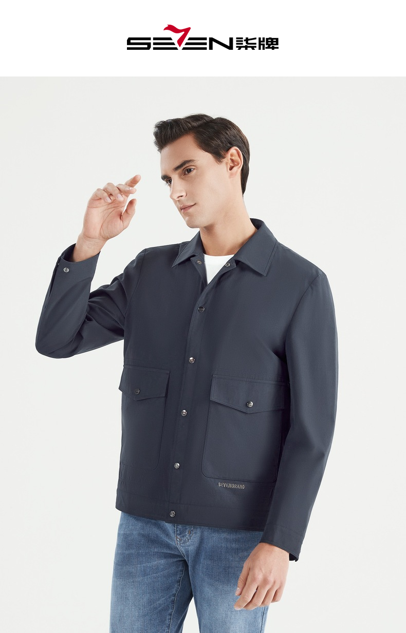 【特价】柒牌男装夹克春季新款中青年时尚潮流百搭字母翻领外套茄克衫 122K70020