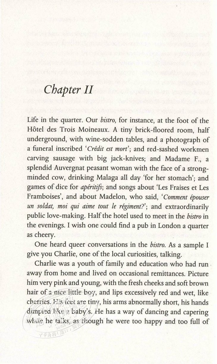Written when Orwell was a struggling writer in his twenties, it documents his 'first contact with poverty'. Here, he painstakingly documents a world of unrelenting drudgery and squalor - sleeping in bug-infested hostels and doss houses of last resort, working as a dishwasher in Paris's vile 'Hôtel X', surviving on scraps and cigarette butts, living alongside tramps, a star-gazing pavement artist and a starving Russian ex-army captain. Exposing a shocking, previously-hidden world to his readers, Orwell gave a human face to the statistics of poverty for the first time - and in doing so, found his voice as a writer.
