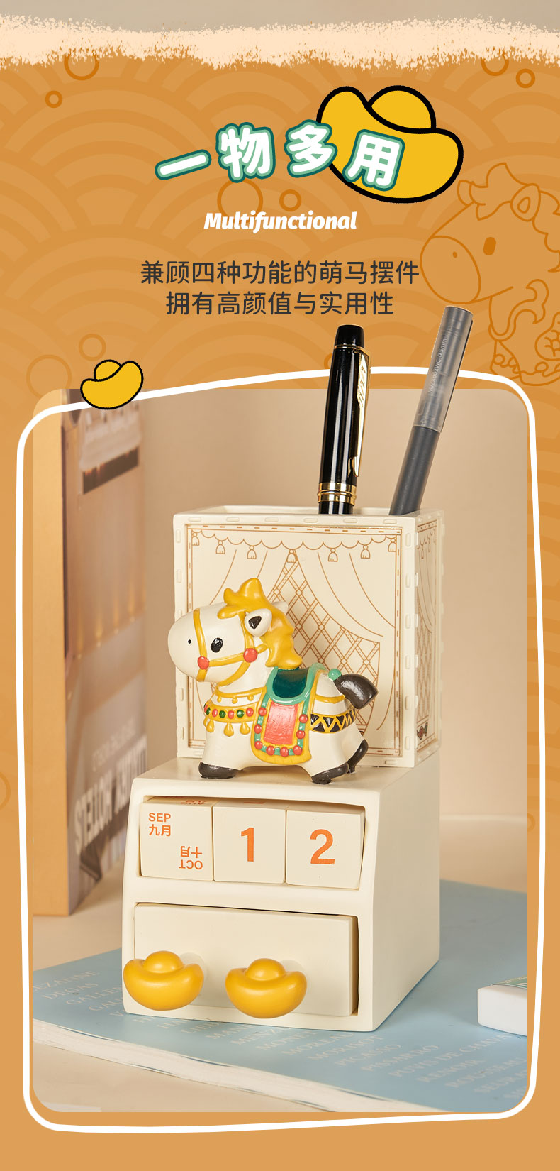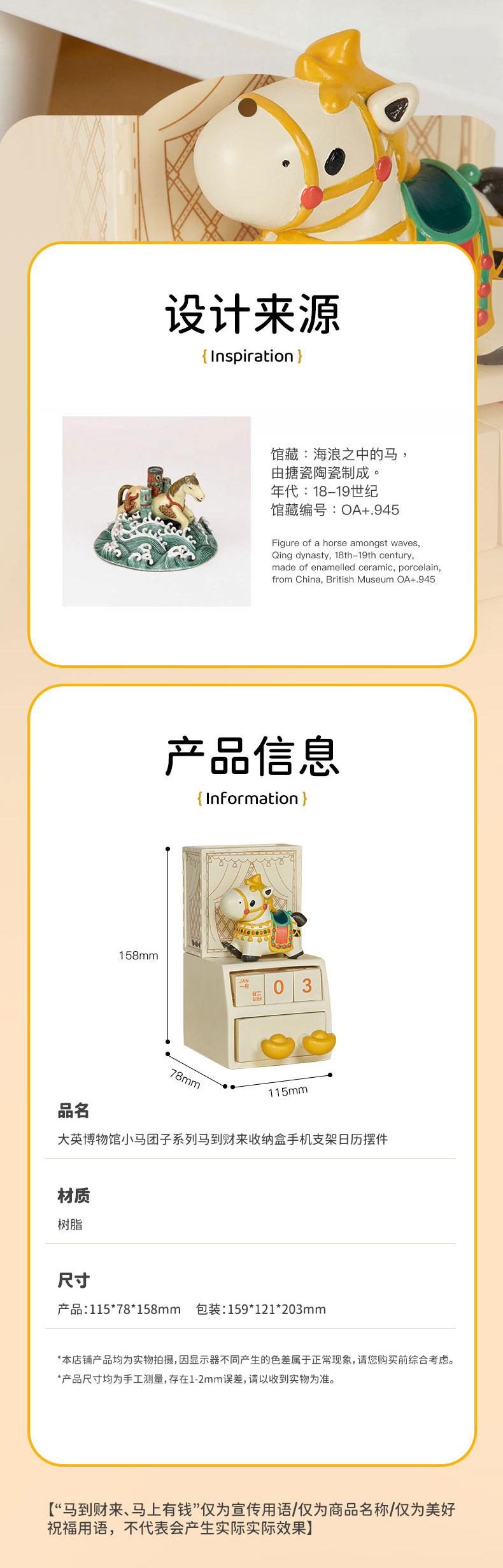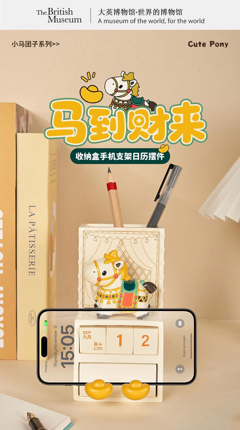 大英博物馆 小马团子系列 马到财来 收纳盒手机支架日历摆件