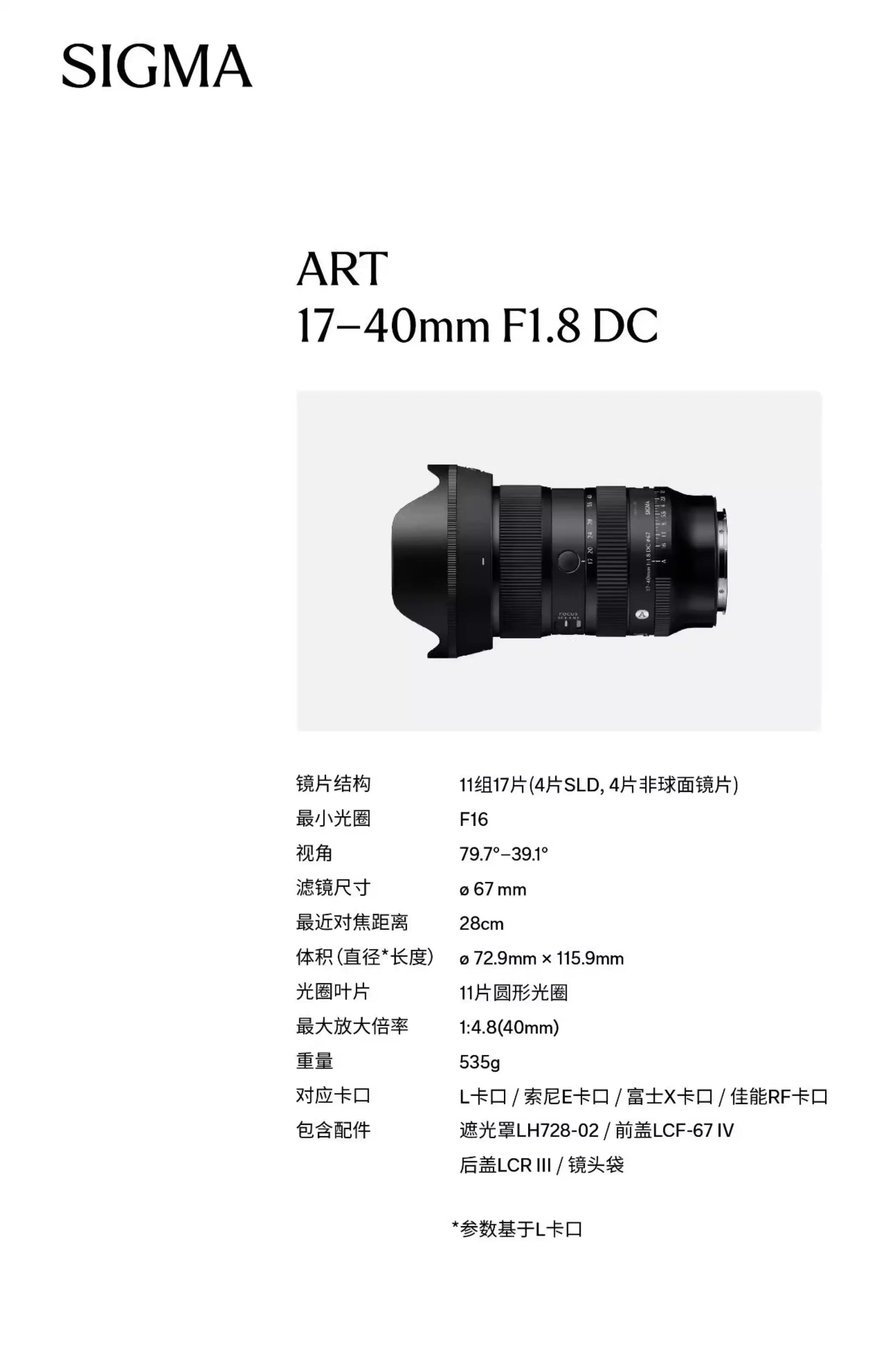 全新国行丨适马(SIGMA)17-40mm F1.8 DC Art 恒定大光圈半画幅微单标准变焦镜头风光人像