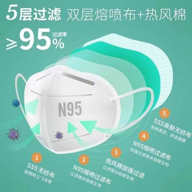超值100只【独立包装❗五层防护】Kn95口罩防尘透气五层防护防飞沫成人勒耳dKN95独立装日用。rf