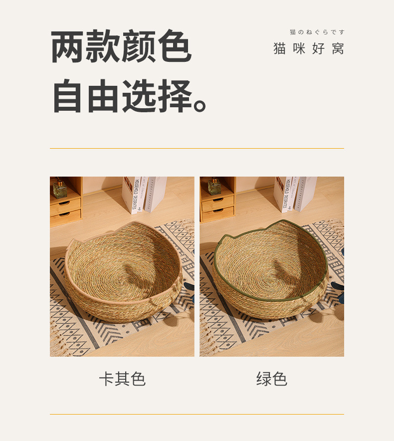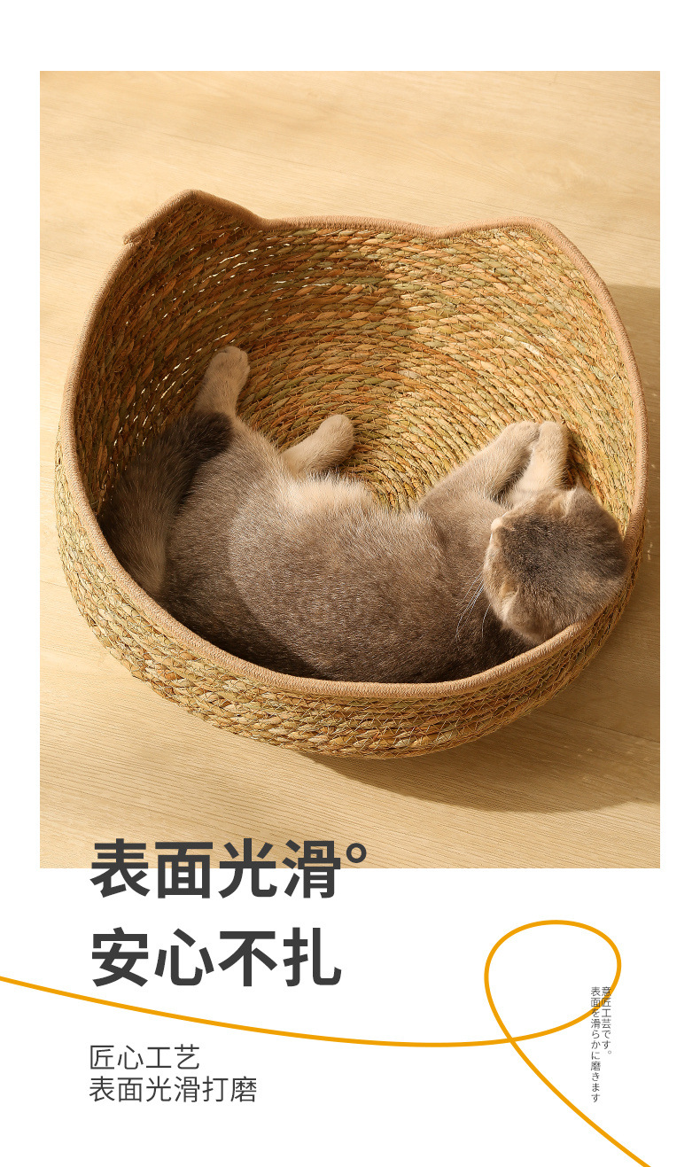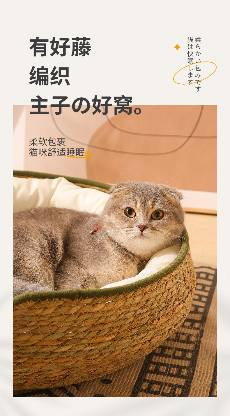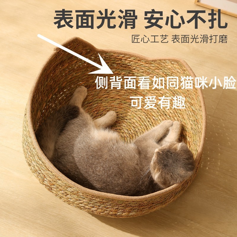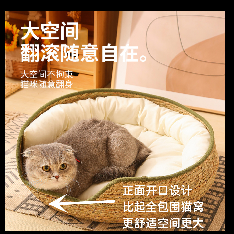 【藤编材质!舒适可拆洗】猫窝四季通用夏季凉窝猫抓板,宠物窝可拆洗编兔子窝宠物用品,舒适包裹、耐用材质、大空间、光滑打磨