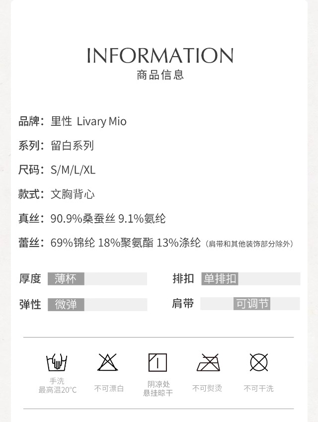 里性 LIVARY MIO 留白蕾丝真丝无钢圈内衣可外穿不对称设计背心