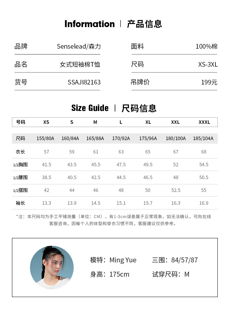 Senselead森力/女式短袖棉T恤 SSAJI82163