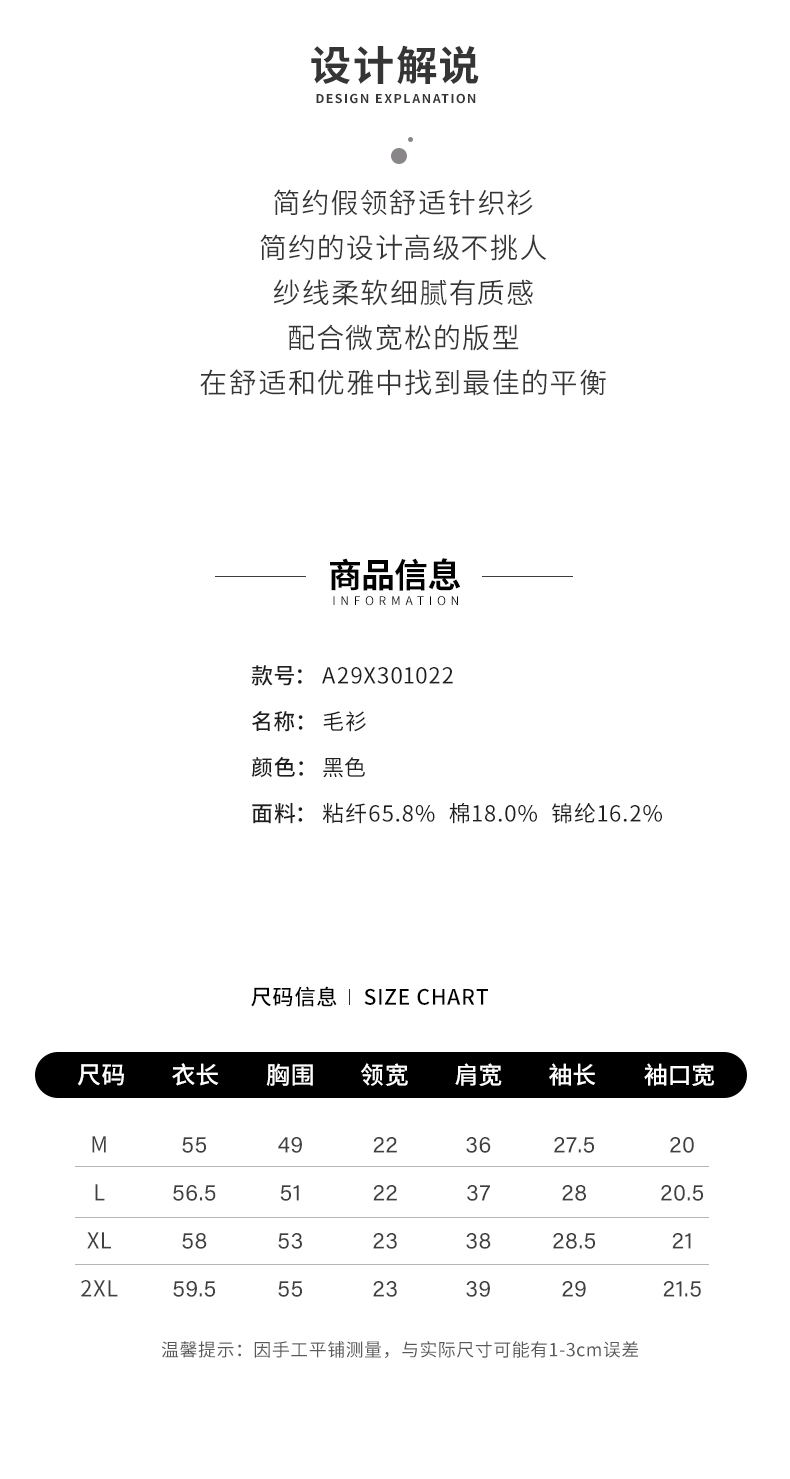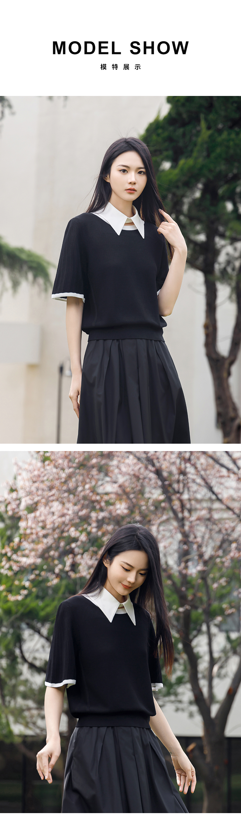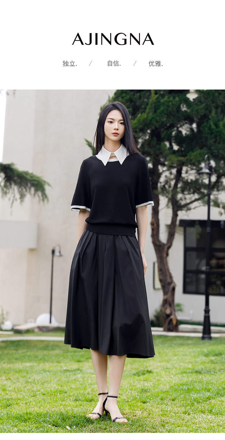 【商场同款】阿菁娜2024夏季新款假领舒适针织衫A29X301022