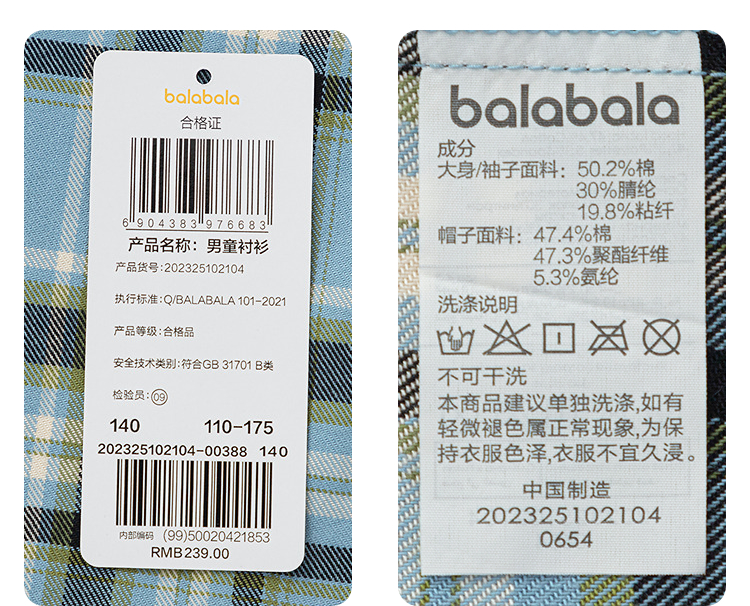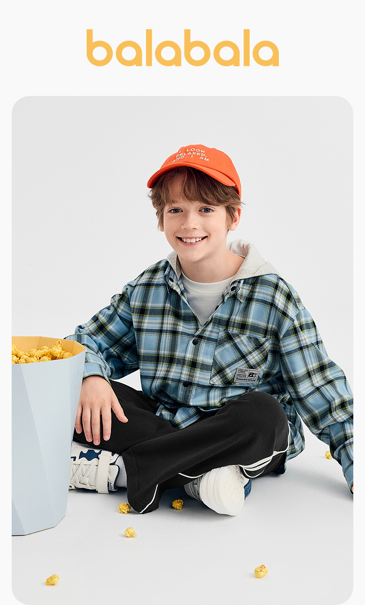 【商场同款】巴拉巴拉男童衬衫儿童长袖2025新款秋绒绒棉格纹外套