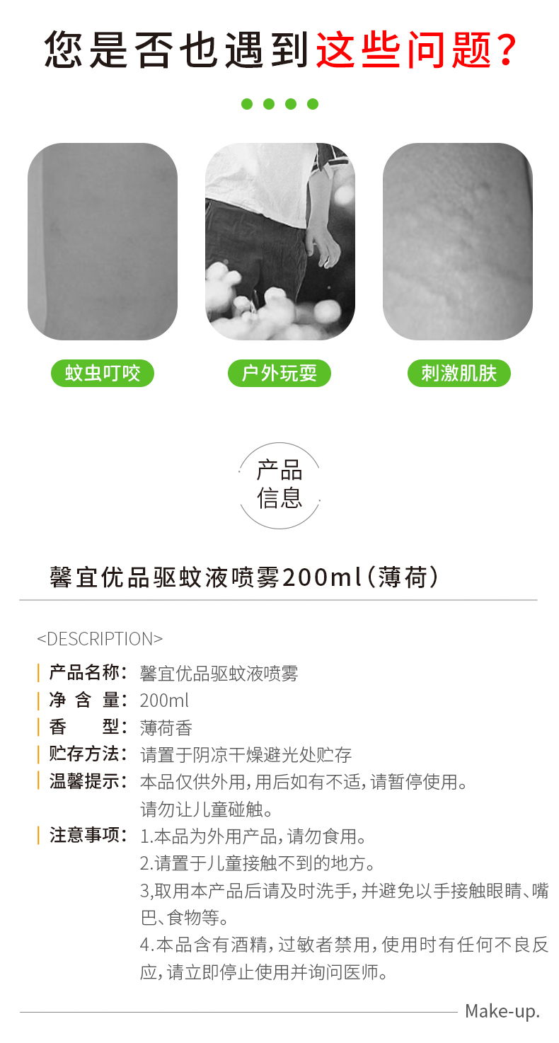 馨宜优品驱蚊液喷雾200ml(薄荷)(240145)