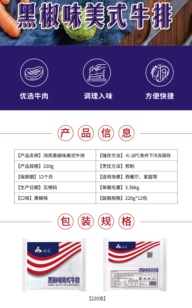 鸿亮黑椒味美式牛排220g(新老包装随机发货)