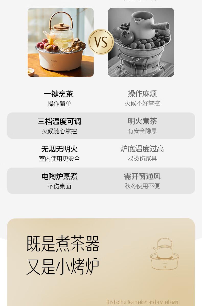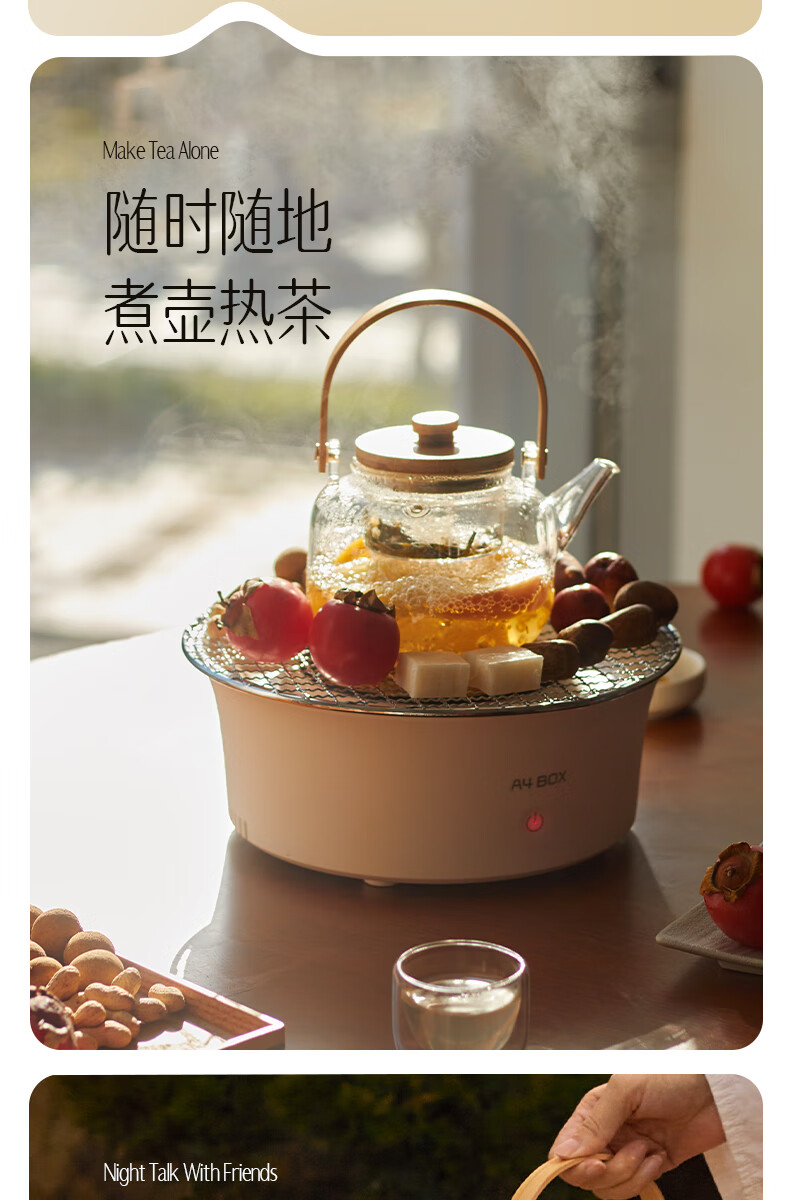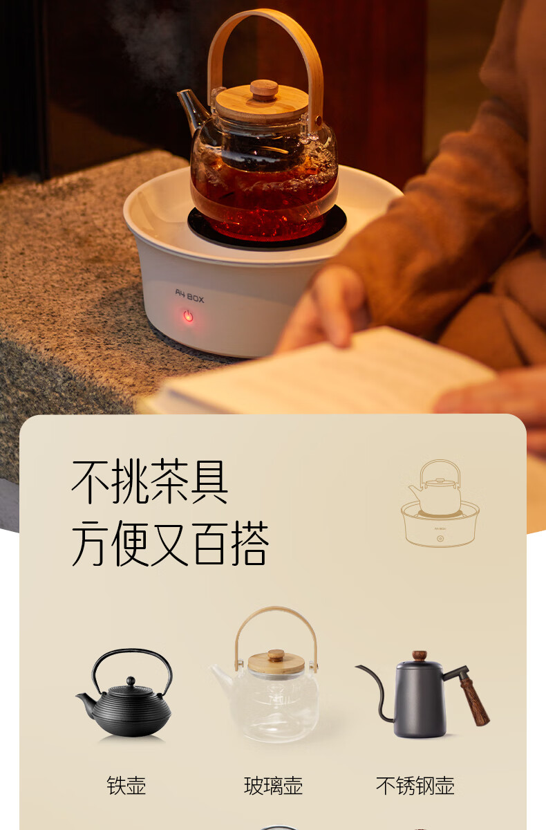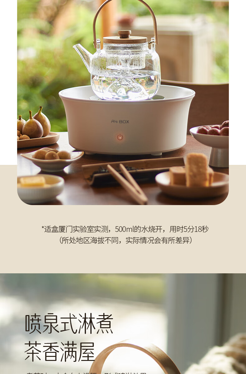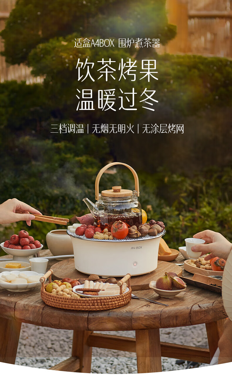 适盒(A4BOX)围炉煮茶器家用电茶炉喷淋式蒸汽煮茶壶花茶养生壶泡茶烧水壶 象牙白【围炉煮茶器】