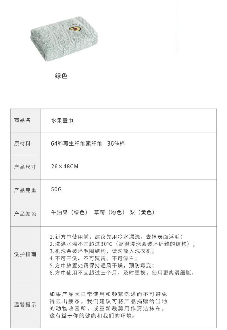 三利毛巾再生纤维素纤维(竹纤维)童巾儿童洗脸巾婴儿毛巾水果毛巾