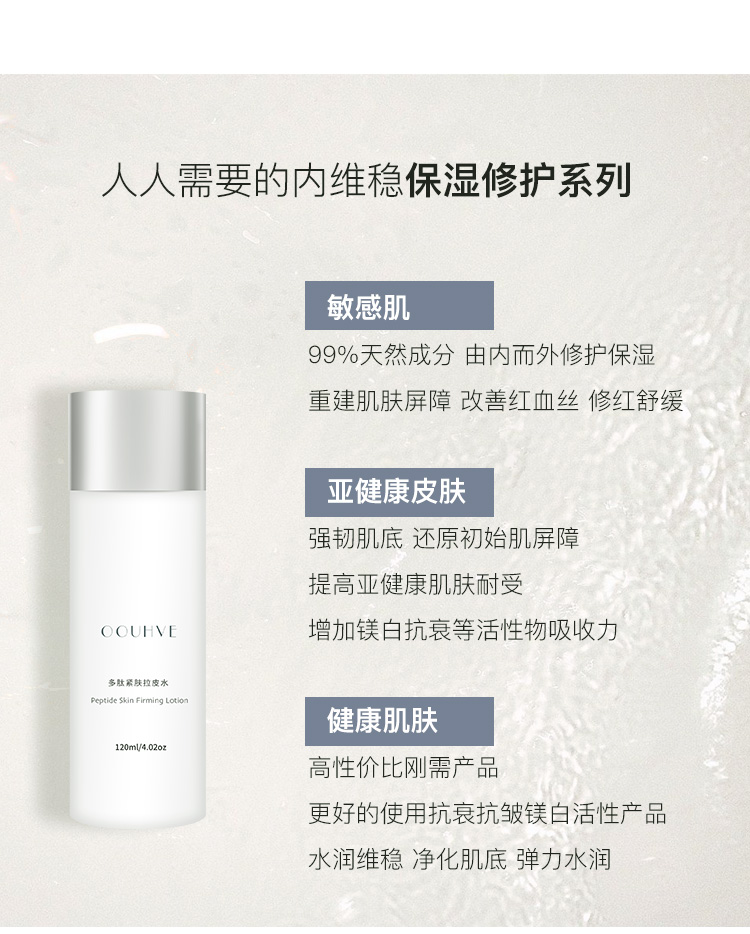 - OOUHVE无添加护肤品,以内养外精准护肤 译为“更像自己”通过肌肤是有生命,学会倾听肌肤声音的探讨 赋予产品精神意义与力量,通过优选原料品质温和精纯有效的护肤品,让每一位女性在使用后更加独立坚强。